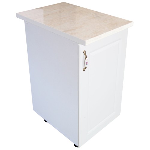 Corpul inferior cu 1 usa stanga Zebra este fabricat din PAL Melaminat alb cu grosimea de 16 mm, iar usa este fabricata din MDF Alb Lucios cu grosimea de 18 mm. Usa are frezare cu model "Dreptunghi" pentru un aspect elegant. Corpul are picioare reglabile de 10 cm pentru o asezare optima in cazul podelelor denivelate, dar si pentru o curatare facila sub corp. Manerul este metalic cu ceramica pentru un aspect elegant, iar in interior se afla o polita mobila care formeaza 2 rafturi de depozitare. Corpul are blat atermic de culoare Travertin. Dimensiunile corpului sunt 40 cm latime, 85 cm inaltime cu tot cu blat (82 cm fara blat) si 60 cm adancime cu tot cu blat (fara blat corpul are 50 cm adancime cu tot cu maner pentru a permite trecerea plintelor, tevilor, racordurilor etc. ce s-ar putea afla intre perete si corp). In cazul achizitionarii de la noi a mai multor corpuri cu blat, acesta se poate trimite intreg cat sa acopere toate corpurile comandate. Usa este reversibila , astfel incat manerul sau balamalele pot fi montate atat pe partea stanga cat si pe partea dreapta. *Nota: Schita de montaj nu se afla in interiorul coletului intre piesele de mobila. Schita de montaj o sa fie atasata pe spatele facturii.