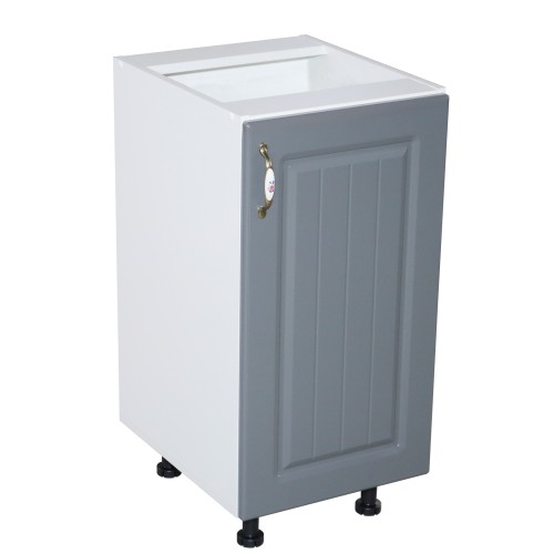 Dimensiuni (l x h x a): 400 x 820 x 481 mm Culoare: Alb cu gri. Materiale folosite: Pal melaminat, usa din MDF infoliat, maner metalic cu insertie portelan, balamale cu piston (inchidere soft close). picioare reglabile plastic 100 mm. *Nota: Schita de montaj nu se afla in interiorul coletului intre piesele de mobila. Schita de montaj o sa fie atasata pe spatele facturii.