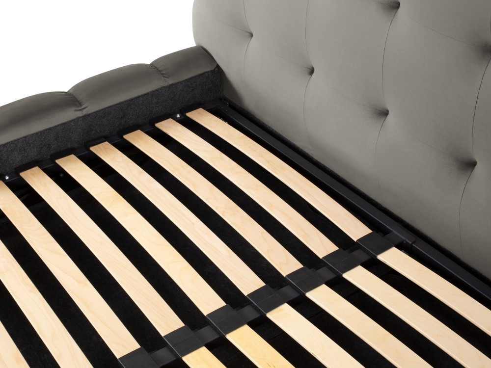 Pat tapitat catifea Bali – 180×200 cm Patul tapitat catifea Bali se caracterizeaza printr-un design foarte elegant. Acesta imbina perfect formele geometrice si tesatura clasica pe sezut si spatar. Tablia si forma acesteia iti ofera suport ideal pentru spate. Datorita proportiilor lor perfecte, aceste paturi vor deveni esentiale in orice spatiu. Dimensiuni: Lungime: 230 cm Latime: 205 cm Inaltime: 125 cm Inaltime cadru (cm): 36 Inaltime spatar (de la partea sezutului pana in sus): 89 cm Saltea: 180x200 cm Detalii tehnice: Compozitie umplutura spatar: spuma poliuretanica 25 kg/m³ Somiera cu sistem de ridicare hidraulic Greutate maxima autorizata (kg): 200 Material picioare: plastic / Culoare: negru Inaltimea picioarelor: 3 cm Structura: lemn masiv, PAL, MDF, spuma poliuretanica, tesatura Salteaua nu este inclusa. Produsul este personalizabil, culoarea produsului și materialul se aleg pe baza paletarelor. Prețul poate suferi modificări în funcție de materialul ales. Produsul nu este montat, este destinat pentru auto-asamblare. Instrucțiunile de montaj vin în colet.