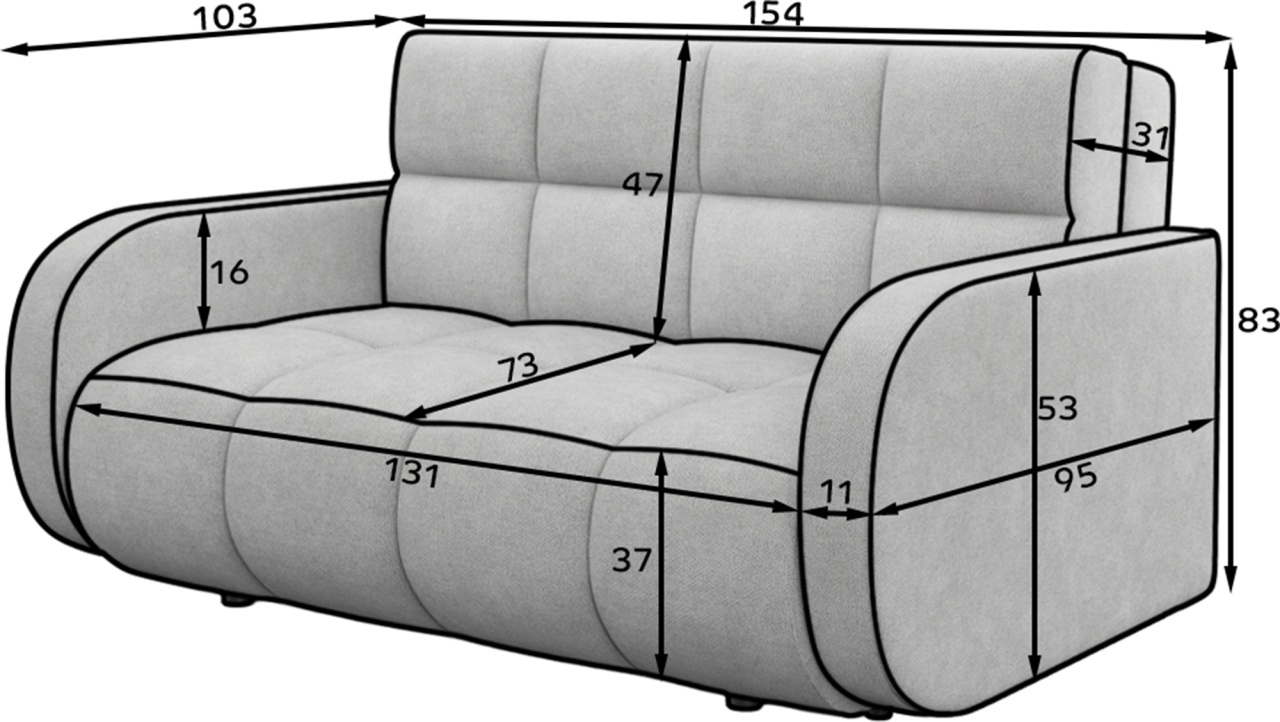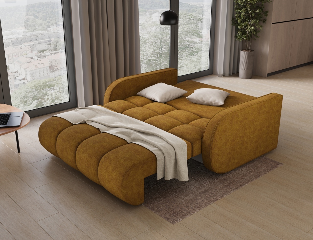 Canapeaua extensibilă Deverio, cu dimensiunile 154x103x83 cm, este o piesă de mobilier modernă și compactă, ideală pentru apartamente mici, camere de oaspeți sau camere pentru tineret, datorită utilizării a două tipuri de spumă - T2540 și T2315 - oferă confort atât la ședere, cât și în timpul somnului. Funcția de extindere permite transformarea rapidă într-un pat, iar lada de depozitare integrată oferă spațiu suplimentar pentru lenjerie, spatele tapițat permite amplasarea liberă în orice parte a încăperii, fără a fi nevoie să fie lipită de perete, sporind flexibilitatea de amenajare, întreaga structură este susținută de picioare din plastic negru care accentuează caracterul modern al piesei, modelul Deverio este combinația perfectă de estetică, funcționalitate și confort pentru cei care caută o soluție versatilă pentru utilizare zilnică. Dimensiuni: Lungime: 154 cm Adâncime: 103 cm Înălțime: 83 cm Adâncime șezut: 73 cm Înălțime șezut : 37 cm Înălțime spătar : 47 cm Înălțime picior: 2 cm Suprafață de dormit: 131x203 cm Tip spumă (șezut): Spumă T2540, Spumă T2315 Tip spumă (spătar): Spumă T2540, Spumă T2313 Tip mecanism: DL Materiale utilizate pentru producerea picioarelor de mobilier: Materiale plastice (culoare: negru) Spătar tapițat: da Produsul nu este montat, montarea este rapidă și ușoară. Produsul este personalizabil, culoarea și materialul se aleg pe baza paletarelor la cererea clientului. Prețul poate suferi modificări în funcție de grupa de material aleasă.
