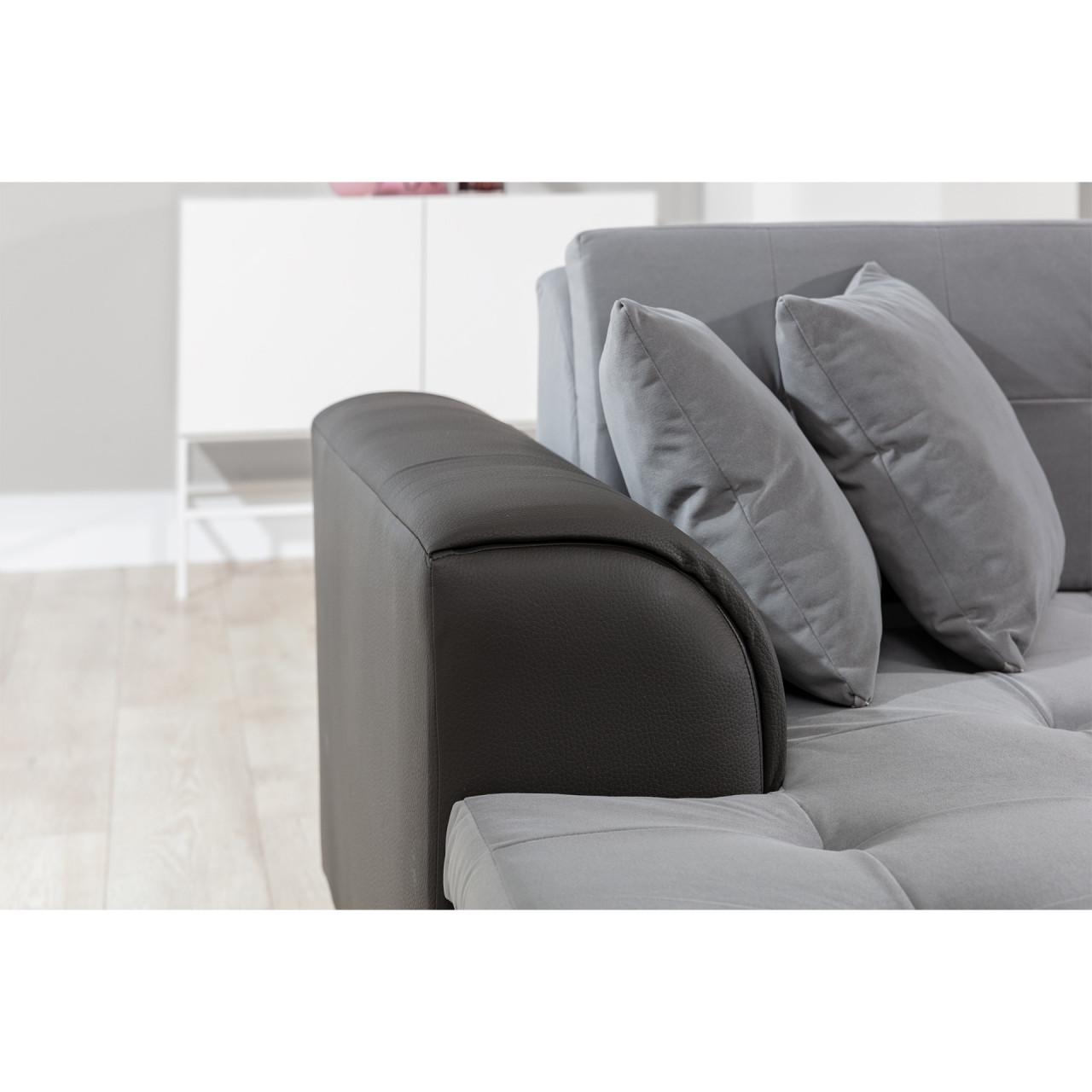 Damario este un colțar spațios, deosebit de elegant și rafinat, de dimensiuni considerabile, măsurând 338x189x78 cm. Această piesă de mobilier în formă de U are un șezut confortabil și moale, realizat din arcuri ondulate durabile, precum și spumă flexibilă T30, rezistentă la deteriorări, deformări și orice tip de zgârieturi. În plus, este echipat cu funcție de dormit. Suprafața destinată acestui scop, obținută printr-un mecanism tip „delfin”, automat și intuitiv, are dimensiunea de 275x126 cm. Dimensiuni: Lungime: 338 cm Adâncime: 189 cm Înălțime cu perne: 78 cm Înălțime fără perne: 76 cm Adâncime șezut: 60 cm Suprafață de dormit: 275x126 cm Produsul nu este montat, montarea este rapidă și ușoară. Produsul este personalizabil, culoarea și materialul se aleg pe baza paletarelor la cererea clientului. Prețul poate suferi modificări în funcție de grupa de material aleasă.