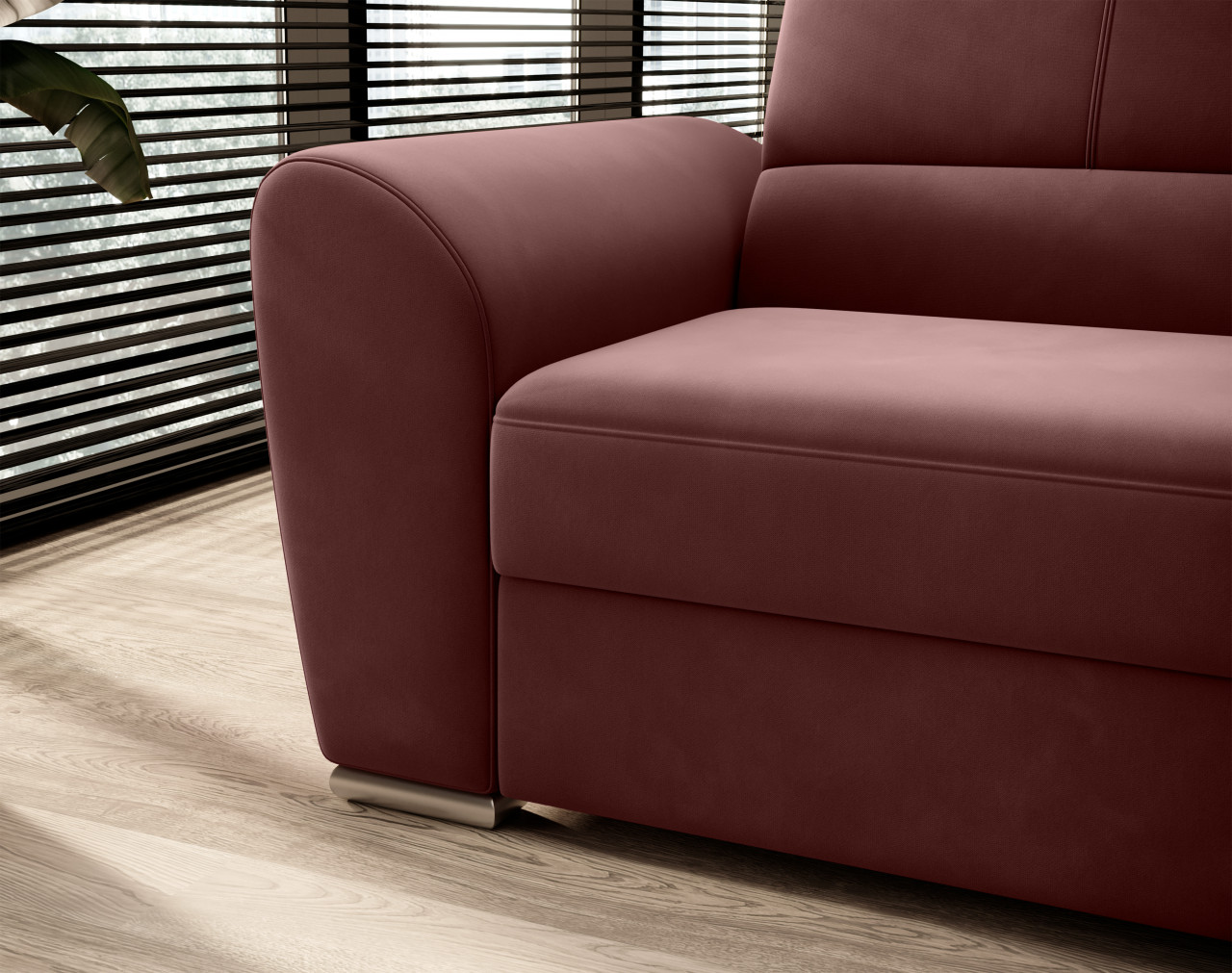 Colțarul Siber este soluția perfectă pentru persoanele care apreciază ordinea și organizarea. Acesta ajută la economisirea spațiului datorită spațiului generos pentru depozitarea lenjeriei. Spătarele sale înalte, profilate și reglabile, decorate cu cusături elegante, transformă chiar și orele petrecute urmărind serialul preferat într-o experiență confortabilă și plăcută. Dimensiunile colțarului - 270x186x93 cm - permit relaxarea mai multor persoane, fără a fi nevoie de mobilier suplimentar pentru ședere. În plus, acesta se poate transforma într-un pat suplimentar, datorită funcției de dormit cu o suprafață de 205x125 cm. Mecanismul de extensie tip „delfin”, folosit în această piesă de mobilier, reprezintă o metodă simplă și practică de a transforma canapeaua de colț într-un pat spațios. Dimensiuni: Lățime: 270 cm Adâncime: 186 cm Înălțimea cu perne: 93 cm Adâncimea șezutului: 57 cm Înălțimea șezutului: 47 cm Funcție de dormit: 205x125 cm Produsul nu este montat, montarea este rapidă și ușoară. Produsul este personalizabil, culoarea și materialul se aleg pe baza paletarelor la cererea clientului. Prețul poate suferi modificări în funcție de grupa de material aleasă.