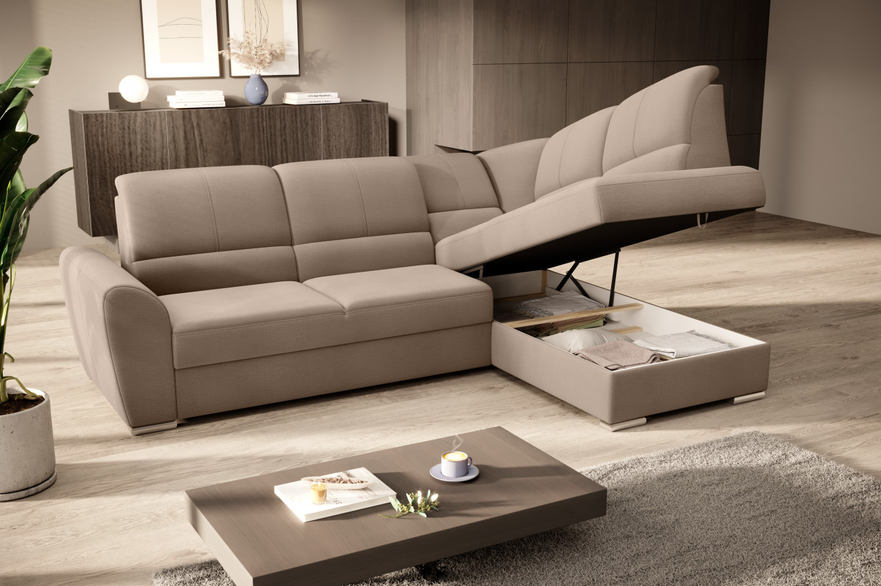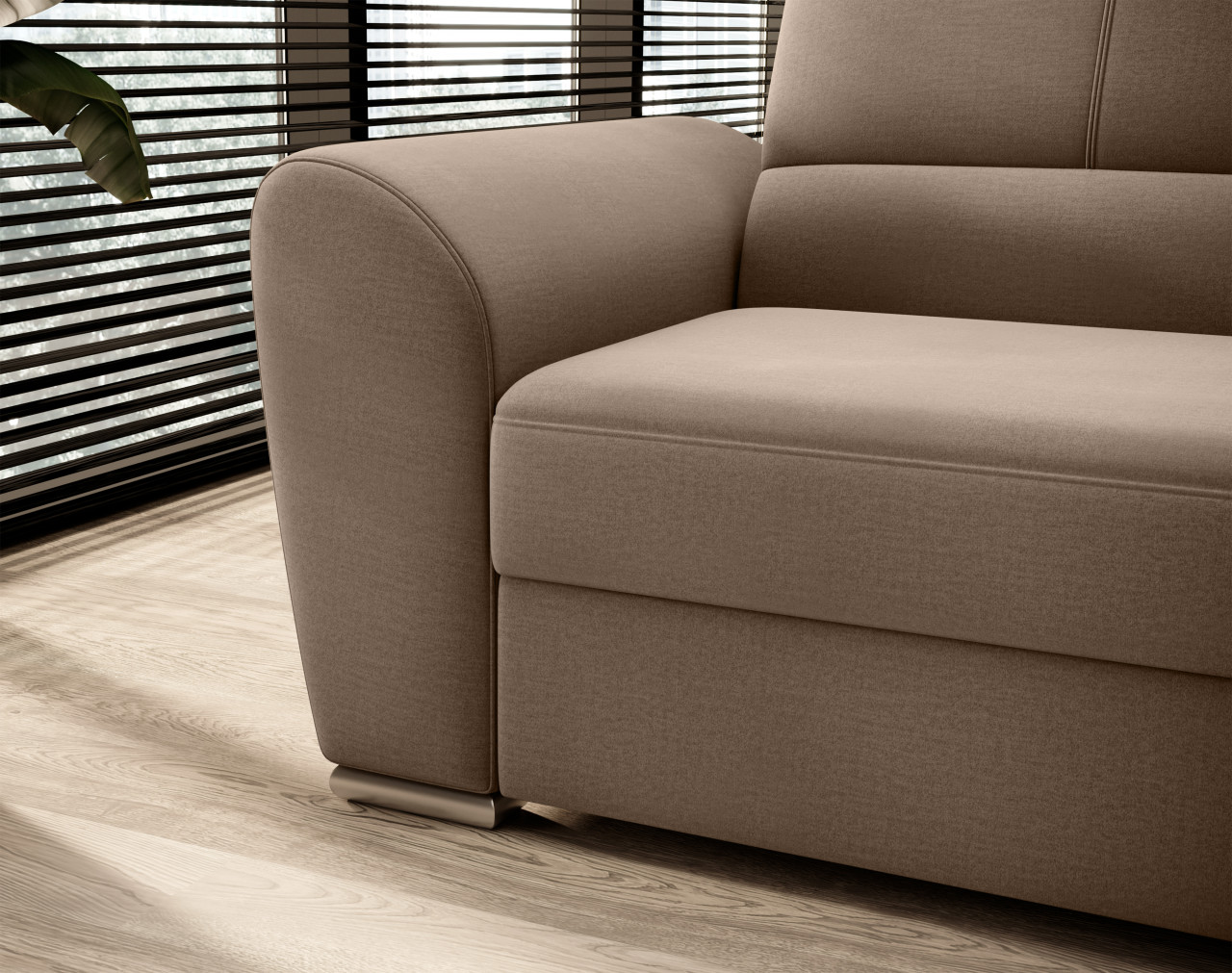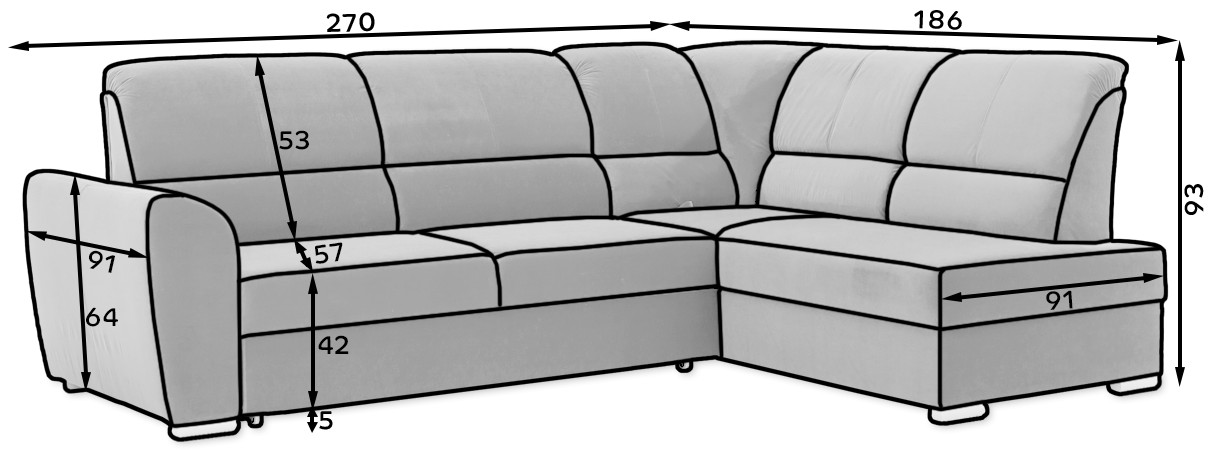 Colțarul Siber este soluția perfectă pentru persoanele care apreciază ordinea și organizarea. Acesta ajută la economisirea spațiului datorită spațiului generos pentru depozitarea lenjeriei. Spătarele sale înalte, profilate și reglabile, decorate cu cusături elegante, transformă chiar și orele petrecute urmărind serialul preferat într-o experiență confortabilă și plăcută. Dimensiunile colțarului - 270x186x93 cm - permit relaxarea mai multor persoane, fără a fi nevoie de mobilier suplimentar pentru ședere. În plus, acesta se poate transforma într-un pat suplimentar, datorită funcției de dormit cu o suprafață de 205x125 cm. Mecanismul de extensie tip „delfin”, folosit în această piesă de mobilier, reprezintă o metodă simplă și practică de a transforma canapeaua de colț într-un pat spațios. Dimensiuni: Lățime: 270 cm Adâncime: 186 cm Înălțimea cu perne: 93 cm Adâncimea șezutului: 57 cm Înălțimea șezutului: 47 cm Funcție de dormit: 205x125 cm Produsul nu este montat, montarea este rapidă și ușoară. Produsul este personalizabil, culoarea și materialul se aleg pe baza paletarelor la cererea clientului. Prețul poate suferi modificări în funcție de grupa de material aleasă.