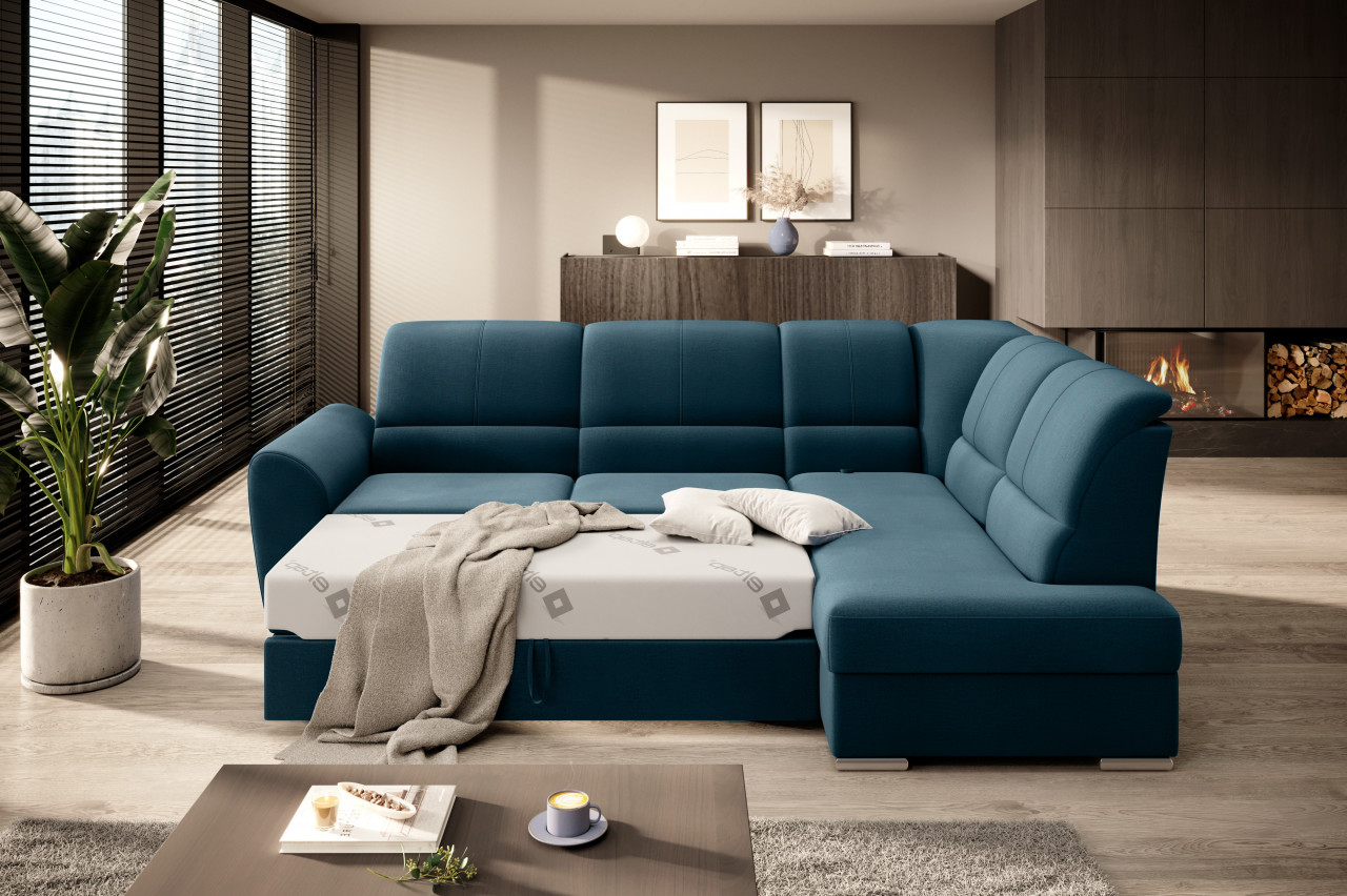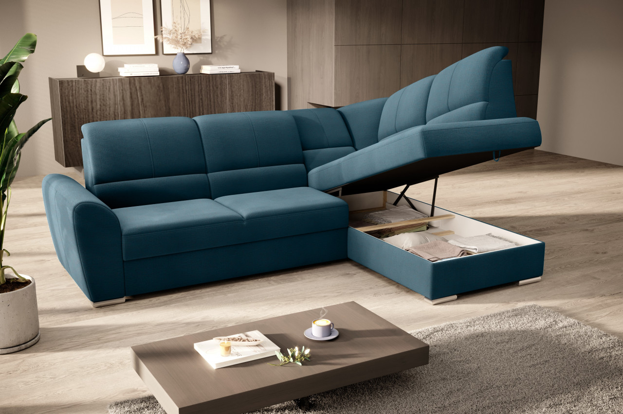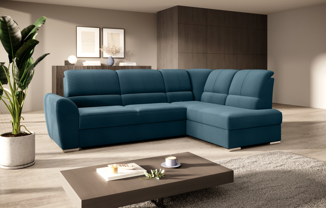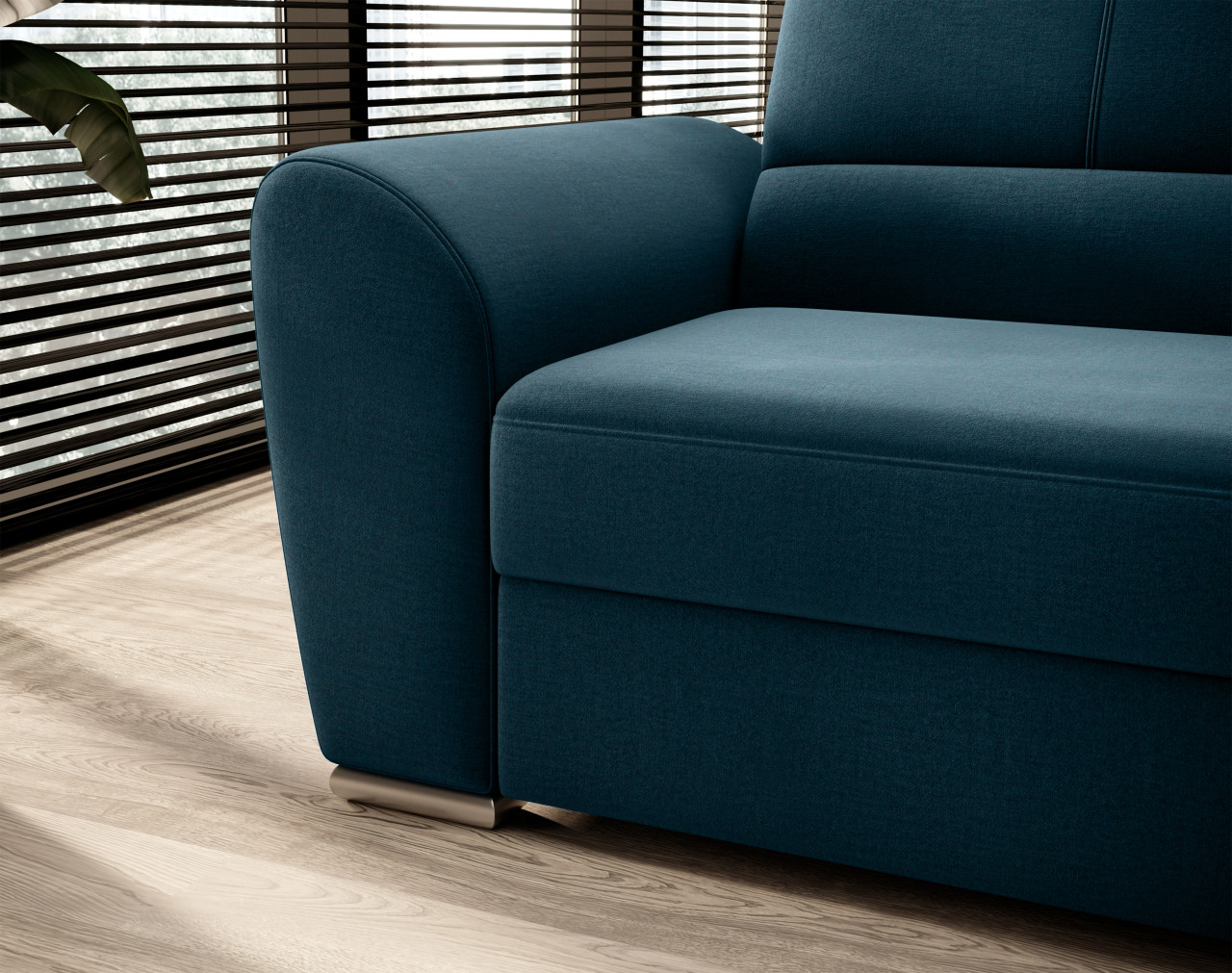 Colțarul Siber este soluția perfectă pentru persoanele care apreciază ordinea și organizarea. Acesta ajută la economisirea spațiului datorită spațiului generos pentru depozitarea lenjeriei. Spătarele sale înalte, profilate și reglabile, decorate cu cusături elegante, transformă chiar și orele petrecute urmărind serialul preferat într-o experiență confortabilă și plăcută. Dimensiunile colțarului - 270x186x93 cm - permit relaxarea mai multor persoane, fără a fi nevoie de mobilier suplimentar pentru ședere. În plus, acesta se poate transforma într-un pat suplimentar, datorită funcției de dormit cu o suprafață de 205x125 cm. Mecanismul de extensie tip „delfin”, folosit în această piesă de mobilier, reprezintă o metodă simplă și practică de a transforma canapeaua de colț într-un pat spațios. Dimensiuni: Lățime: 270 cm Adâncime: 186 cm Înălțimea cu perne: 93 cm Adâncimea șezutului: 57 cm Înălțimea șezutului: 47 cm Funcție de dormit: 205x125 cm Produsul nu este montat, montarea este rapidă și ușoară. Produsul este personalizabil, culoarea și materialul se aleg pe baza paletarelor la cererea clientului. Prețul poate suferi modificări în funcție de grupa de material aleasă.