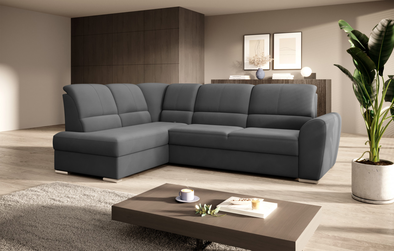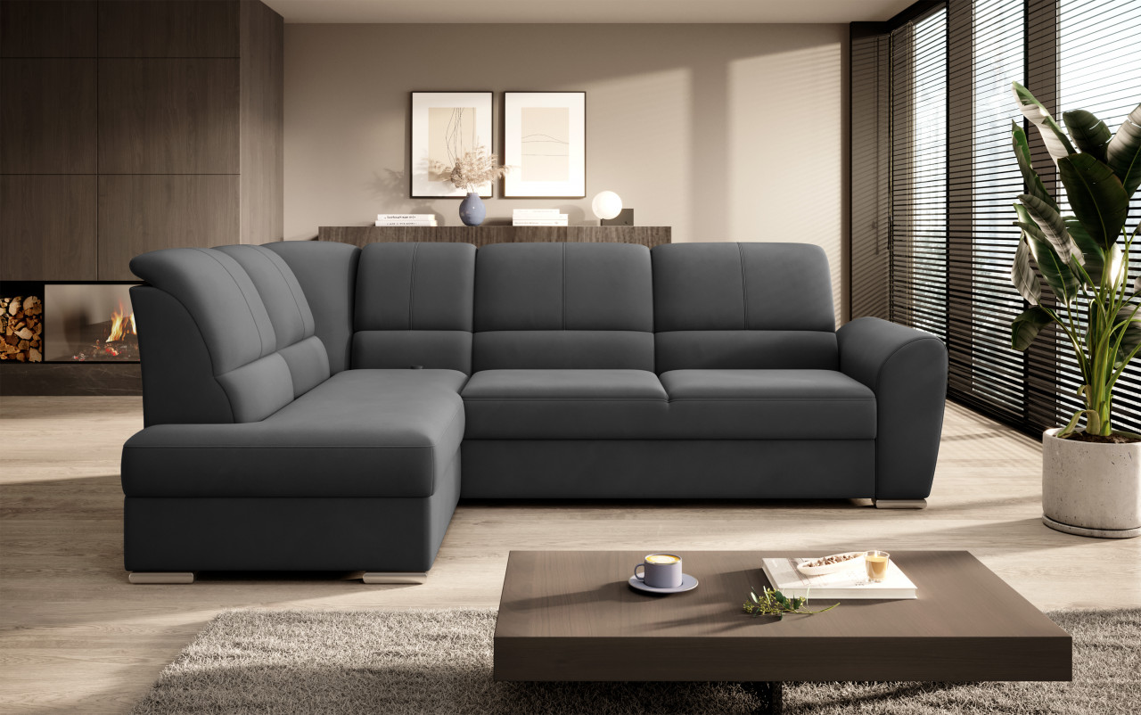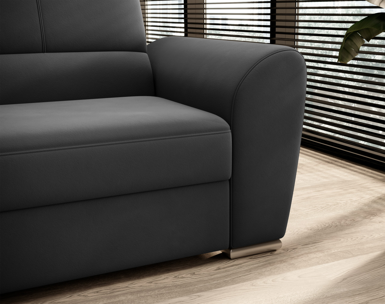 Colțarul Siber este soluția perfectă pentru persoanele care apreciază ordinea și organizarea. Acesta ajută la economisirea spațiului datorită spațiului generos pentru depozitarea lenjeriei. Spătarele sale înalte, profilate și reglabile, decorate cu cusături elegante, transformă chiar și orele petrecute urmărind serialul preferat într-o experiență confortabilă și plăcută. Dimensiunile colțarului - 270x186x93 cm - permit relaxarea mai multor persoane, fără a fi nevoie de mobilier suplimentar pentru ședere. În plus, acesta se poate transforma într-un pat suplimentar, datorită funcției de dormit cu o suprafață de 205x125 cm. Mecanismul de extensie tip „delfin”, folosit în această piesă de mobilier, reprezintă o metodă simplă și practică de a transforma canapeaua de colț într-un pat spațios. Dimensiuni: Lățime: 270 cm Adâncime: 186 cm Înălțimea cu perne: 93 cm Adâncimea șezutului: 57 cm Înălțimea șezutului: 47 cm Funcție de dormit: 205x125 cm Produsul nu este montat, montarea este rapidă și ușoară. Produsul este personalizabil, culoarea și materialul se aleg pe baza paletarelor la cererea clientului. Prețul poate suferi modificări în funcție de grupa de material aleasă.
