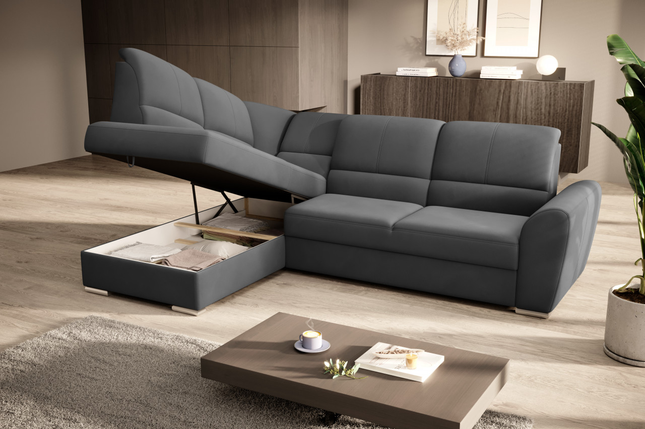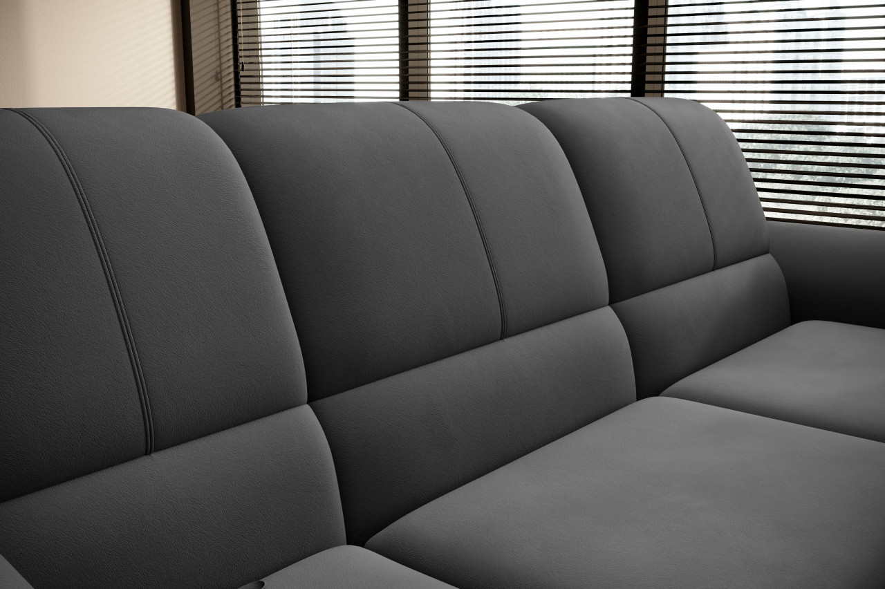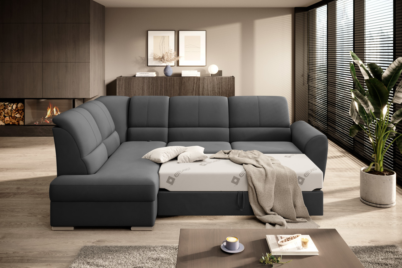 Colțarul Siber este soluția perfectă pentru persoanele care apreciază ordinea și organizarea. Acesta ajută la economisirea spațiului datorită spațiului generos pentru depozitarea lenjeriei. Spătarele sale înalte, profilate și reglabile, decorate cu cusături elegante, transformă chiar și orele petrecute urmărind serialul preferat într-o experiență confortabilă și plăcută. Dimensiunile colțarului - 270x186x93 cm - permit relaxarea mai multor persoane, fără a fi nevoie de mobilier suplimentar pentru ședere. În plus, acesta se poate transforma într-un pat suplimentar, datorită funcției de dormit cu o suprafață de 205x125 cm. Mecanismul de extensie tip „delfin”, folosit în această piesă de mobilier, reprezintă o metodă simplă și practică de a transforma canapeaua de colț într-un pat spațios. Dimensiuni: Lățime: 270 cm Adâncime: 186 cm Înălțimea cu perne: 93 cm Adâncimea șezutului: 57 cm Înălțimea șezutului: 47 cm Funcție de dormit: 205x125 cm Produsul nu este montat, montarea este rapidă și ușoară. Produsul este personalizabil, culoarea și materialul se aleg pe baza paletarelor la cererea clientului. Prețul poate suferi modificări în funcție de grupa de material aleasă.