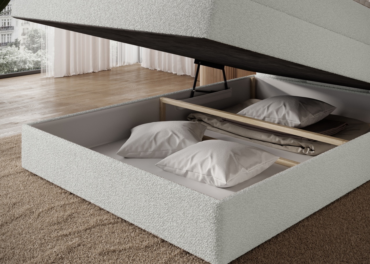 Patul Kasped este o alegere modernă și funcțională pentru orice dormitor, disponibil în două dimensiuni: 215x121x108 cm și 215x141x108 cm, ceea ce permite adaptarea sa la nevoile individuale și la dimensiunile încăperii. Construcția patului se bazează pe un cadru solid din lemn masiv și PAL, asigurând stabilitate și durabilitate pe termen lung. Elementul central al confortului este salteaua cu arcuri Bonell, fixată permanent în cadru, care datorită arcurilor Bonell oferă un suport eficient corpului și asigură condiții bune de somn și o bună circulație a aerului. În plus, patul este echipat cu două straturi de spumă de înaltă calitate - spumă T2130 și spumă T2540 - care, în combinație cu arcurile, sporesc flexibilitatea și confortul de utilizare, adaptându-se formei corpului și oferind un somn sănătos și odihnitor. Întregul design este realizat într-un stil modern, cu linii drepte și o formă elegantă, completat de picioare negre din plastic rezistent - nu doar stabile, ci și estetice. Un element extrem de practic este lada de depozitare pentru lenjerie, care permite stocarea comodă a pilotelor, pernelor sau a altor textile, contribuind la menținerea ordinii în dormitor. Patul Kasped îmbină calitatea ridicată a execuției, estetica și funcționalitatea, fiind o alegere excelentă atât pentru interioarele moderne, cât și pentru cele clasice. Dimensiuni: Lățime: 121 cm Lungime: 215 cm Înălțime: 108 cm Înălțime șezut: 63 cm Suprafață de dormit: 120x200 cm Înălțime picioare: 1,5 cm Recipient depozitare lenjerie de pat: 120x116x19 cm Spătar tapițat: nu Produsul nu este montat, montarea este rapidă și ușoară. Produsul este personalizabil, culoarea și materialul se aleg pe baza paletarelor la cererea clientului. Prețul poate suferi modificări în funcție de grupa de material aleasă.