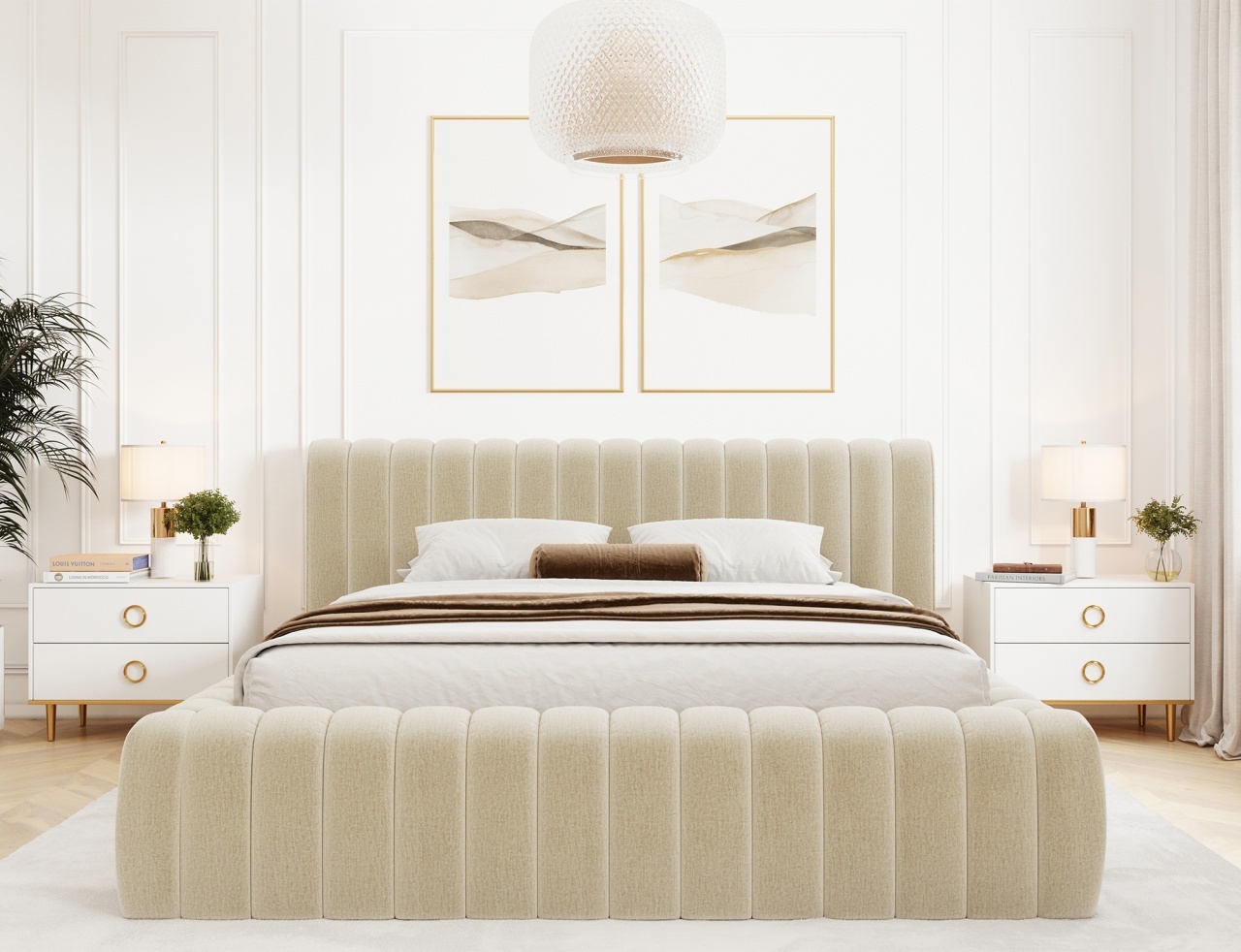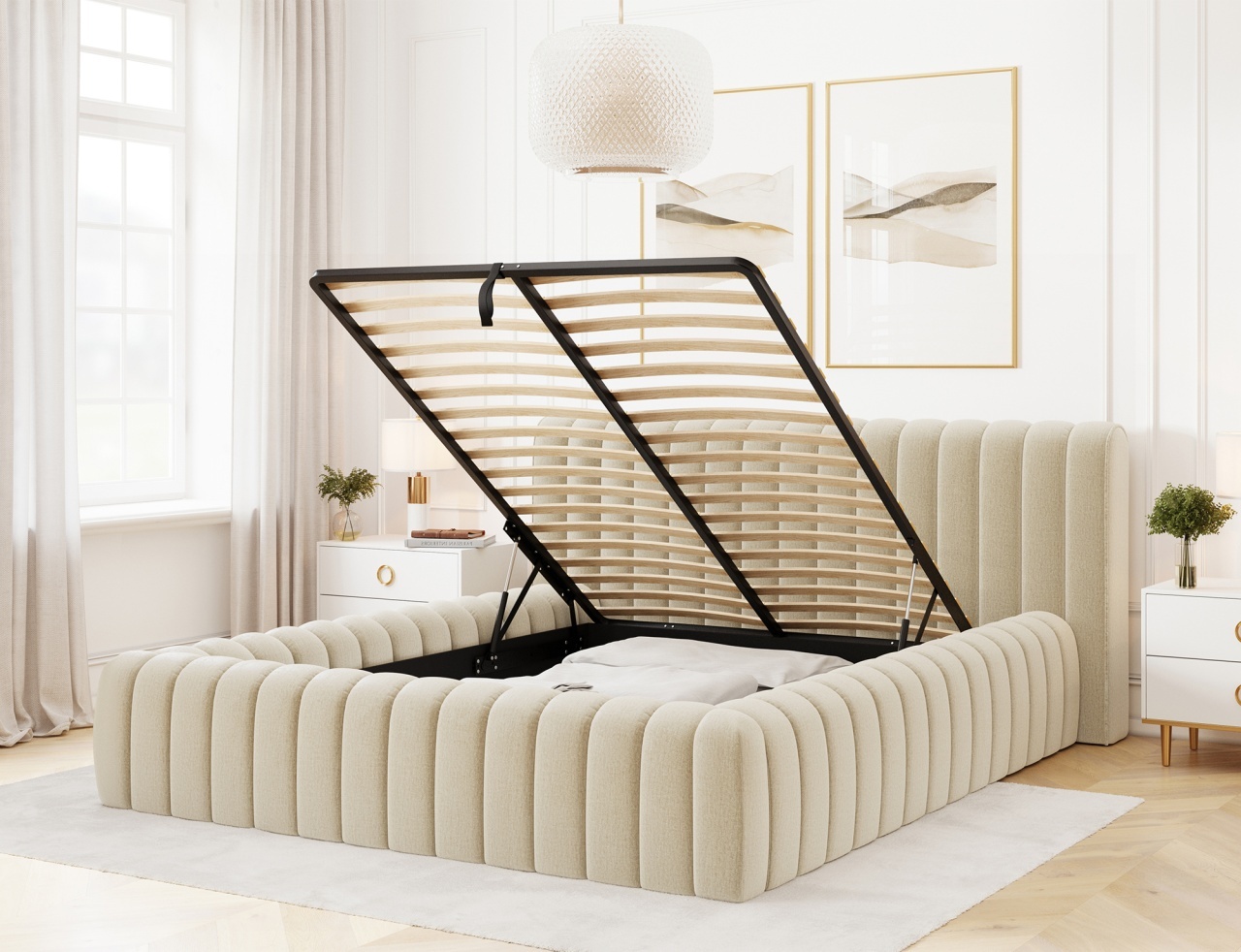 Patul Carilla este o piesă de mobilier modernă și elegantă, disponibilă în trei dimensiuni: 140x200 cm, 160x200 cm și 180x200 cm, integrându-se perfect în tendințele interioarelor contemporane. Confortul utilizării este asigurat de umplutura ramei și a tăbliei cu spumă poliuretanică de înaltă calitate T2130 și T2315, garantând durabilitate și confort. Construcția sa solidă se bazează pe un cadru metalic cu 36 de lamele, oferind un suport excelent pentru saltea și un somn odihnitor. Întregul ansamblu este completat de un glisor negru, care evidențiază stabilitatea și estetica piesei de mobilier. Dimensiuni: Lățime: 222 cm Lungime: 244 cm Înălțime: 93 cm Înălțime șezut: 42 cm Suprafață dormit: 160x200 cm Înălțime picioare: 2 cm Recipient depozitare lenjerie de pat: 200x160x19 cm Număr de lamele: 36 Spătar tapițat: nu Saltea inclusă: nu Produsul nu este montat, montarea este rapidă și ușoară. Produsul este personalizabil, culoarea și materialul se aleg pe baza paletarelor la cererea clientului. Prețul poate suferi modificări în funcție de grupa de material aleasă.