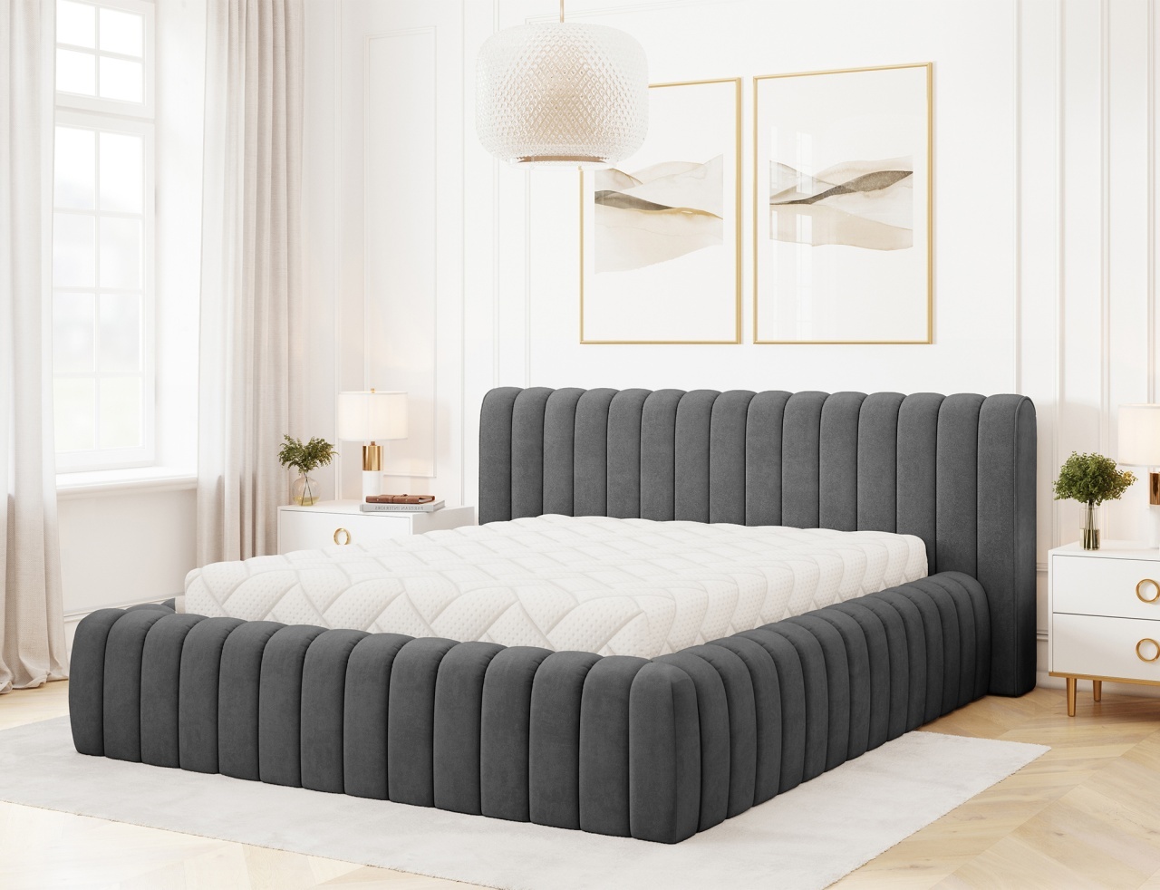 Patul Carilla este o piesă de mobilier modernă și elegantă, disponibilă în trei dimensiuni: 140x200 cm, 160x200 cm și 180x200 cm, integrându-se perfect în tendințele interioarelor contemporane. Confortul utilizării este asigurat de umplutura ramei și a tăbliei cu spumă poliuretanică de înaltă calitate T2130 și T2315, garantând durabilitate și confort. Construcția sa solidă se bazează pe un cadru metalic cu 36 de lamele, oferind un suport excelent pentru saltea și un somn odihnitor. Întregul ansamblu este completat de un glisor negru, care evidențiază stabilitatea și estetica piesei de mobilier. Dimensiuni: Lățime: 222 cm Lungime: 244 cm Înălțime: 93 cm Înălțime șezut: 42 cm Suprafață dormit: 160x200 cm Înălțime picioare: 2 cm Recipient depozitare lenjerie de pat: 200x160x19 cm Număr de lamele: 36 Spătar tapițat: nu Saltea inclusă: nu Produsul nu este montat, montarea este rapidă și ușoară. Produsul este personalizabil, culoarea și materialul se aleg pe baza paletarelor la cererea clientului. Prețul poate suferi modificări în funcție de grupa de material aleasă.