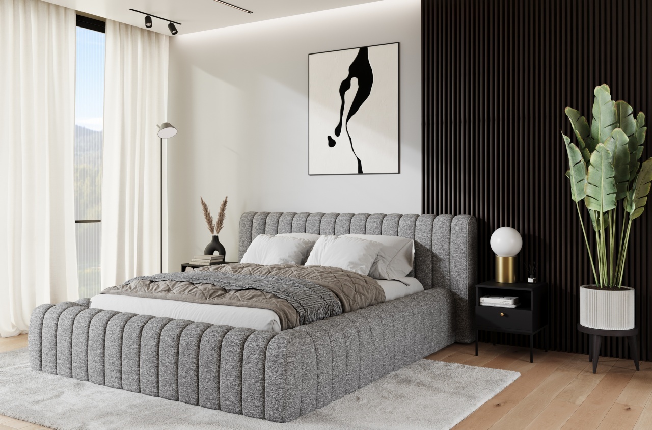 Patul Carilla este o piesă de mobilier modernă și elegantă, disponibilă în trei dimensiuni: 140x200 cm, 160x200 cm și 180x200 cm, integrându-se perfect în tendințele interioarelor contemporane. Confortul utilizării este asigurat de umplutura ramei și a tăbliei cu spumă poliuretanică de înaltă calitate T2130 și T2315, garantând durabilitate și confort. Construcția sa solidă se bazează pe un cadru metalic cu 36 de lamele, oferind un suport excelent pentru saltea și un somn odihnitor. Întregul ansamblu este completat de un glisor negru, care evidențiază stabilitatea și estetica piesei de mobilier. Dimensiuni: Lățime: 242 cm Lungime: 244 cm Înălțime: 93 cm Înălțime șezut: 42 cm Suprafață dormit: 180x200 cm Înălțime picioare: 2 cm Recipient depozitare lenjerie de pat: 200x180x19 cm Număr de lamele: 36 Spătar tapițat: nu Saltea inclusă: nu Produsul nu este montat, montarea este rapidă și ușoară. Produsul este personalizabil, culoarea și materialul se aleg pe baza paletarelor la cererea clientului. Prețul poate suferi modificări în funcție de grupa de material aleasă.