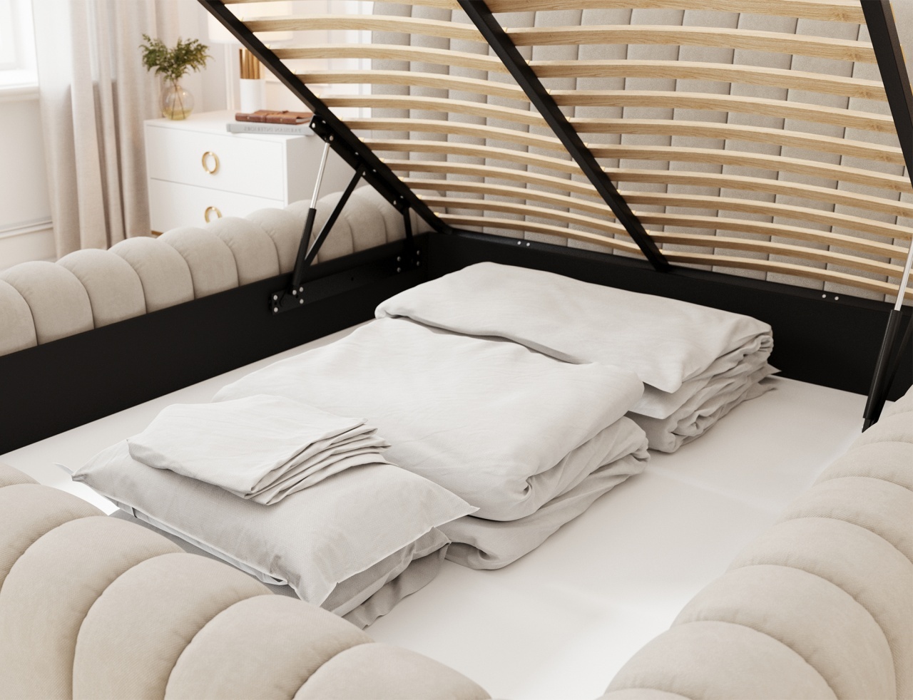 Patul Carilla este o piesă de mobilier modernă și elegantă, disponibilă în trei dimensiuni: 140x200 cm, 160x200 cm și 180x200 cm, integrându-se perfect în tendințele interioarelor contemporane. Confortul utilizării este asigurat de umplutura ramei și a tăbliei cu spumă poliuretanică de înaltă calitate T2130 și T2315, garantând durabilitate și confort. Construcția sa solidă se bazează pe un cadru metalic cu 36 de lamele, oferind un suport excelent pentru saltea și un somn odihnitor. Întregul ansamblu este completat de un glisor negru, care evidențiază stabilitatea și estetica piesei de mobilier. Dimensiuni: Lățime: 242 cm Lungime: 244 cm Înălțime: 93 cm Înălțime șezut: 42 cm Suprafață dormit: 180x200 cm Înălțime picioare: 2 cm Recipient depozitare lenjerie de pat: 200x180x19 cm Număr de lamele: 36 Spătar tapițat: nu Saltea inclusă: nu Produsul nu este montat, montarea este rapidă și ușoară. Produsul este personalizabil, culoarea și materialul se aleg pe baza paletarelor la cererea clientului. Prețul poate suferi modificări în funcție de grupa de material aleasă.
