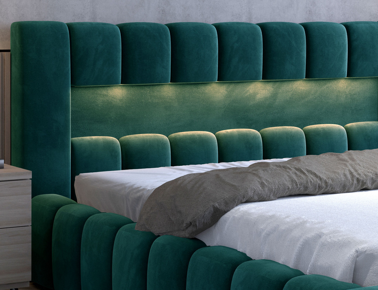 Lamica este un pat în stil glamour foarte confortabil, moale și original, care impresionează prin forma sa. De asemenea, are două compartimente spațioase pentru lenjeria de pat. Patul Lamica se distinge prin design, deoarece tetiera înaltă și părțile laterale ale patului sunt create cu spumă suplimentară. Un alt avantaj este tetiera cu iluminare LED, datorită căreia odihna va fi și mai plăcută. Dimensiuni: Lățime: 162 cm Adâncime: 232 cm Înălțime: 90 cm Înălțime șezut: 30 cm Alegerea suprafeței de dormit: 140x200 cm Cu somieră de lemn Produsul nu este montat, montarea este rapidă și ușoară. Produsul este personalizabil, culoarea și materialul se aleg pe baza paletarelor la cererea clientului. Prețul poate suferi modificări în funcție de grupa de material aleasă.