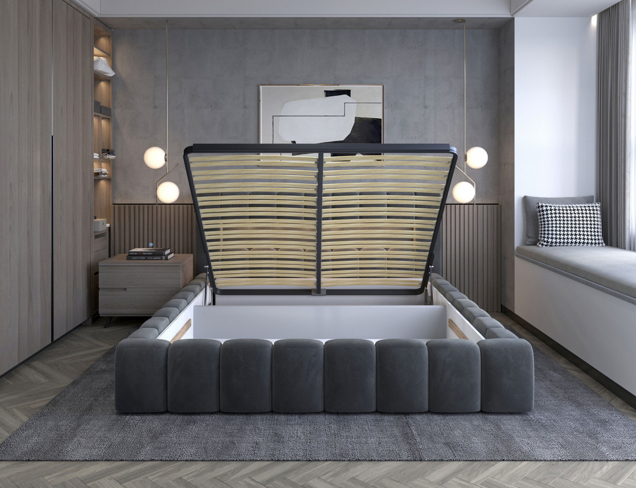 Lamica este un pat în stil glamour foarte confortabil, moale și original, care impresionează prin forma sa. De asemenea, are două compartimente spațioase pentru lenjeria de pat. Patul Lamica se distinge prin design, deoarece tetiera înaltă și părțile laterale ale patului sunt create cu spumă suplimentară. Un alt avantaj este tetiera cu iluminare LED, datorită căreia odihna va fi și mai plăcută. Dimensiuni: Lățime: 162 cm Adâncime: 232 cm Înălțime: 90 cm Înălțime șezut: 30 cm Alegerea suprafeței de dormit: 140x200 cm Cu somieră de lemn Produsul nu este montat, montarea este rapidă și ușoară. Produsul este personalizabil, culoarea și materialul se aleg pe baza paletarelor la cererea clientului. Prețul poate suferi modificări în funcție de grupa de material aleasă.