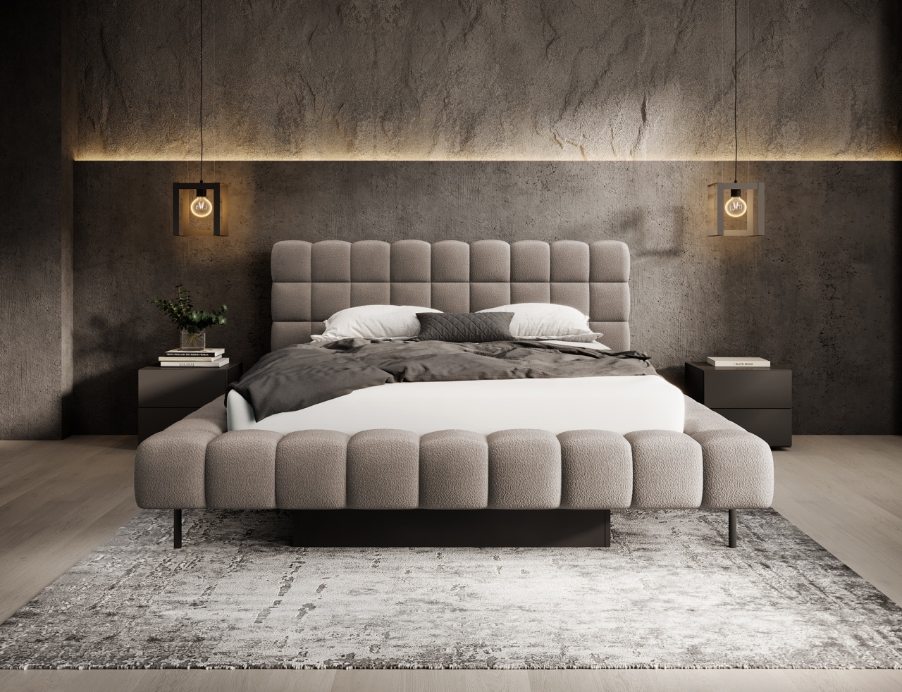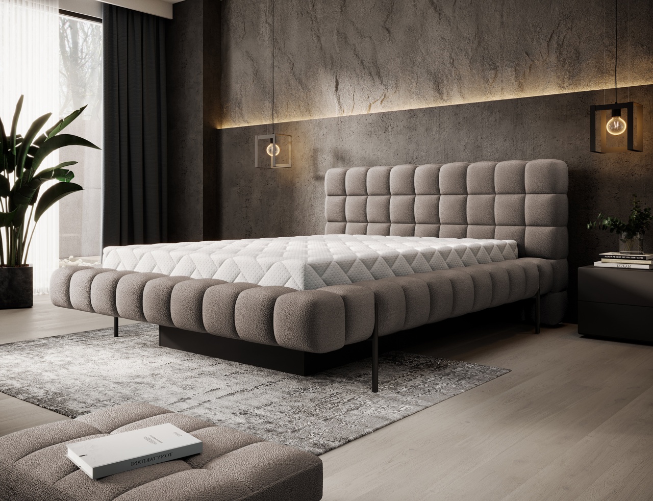 Patul Magentta reprezintă o combinație de design modern, funcționalitate și confort deosebit. Datorită spatelui tapițat, patul are un aspect extrem de elegant și adaugă o notă de căldură oricărui dormitor. Structura solidă și spătarul umplut cu spumă T2130 oferă un suport excelent și confort atât pentru somn, cât și pentru relaxare. Modelul este disponibil în trei dimensiuni: 140 cm, 160 cm și 180 cm, permițând adaptarea acestuia la dimensiunea camerei și la preferințele individuale. Cadru metalic include 36 de lamele care susțin uniform salteaua (se achiziționează separat), sporind durabilitatea construcției și confortul utilizării. Piciorul negru din metal oferă o bază solidă și accentuează caracterul minimalist și modern al patului. Un avantaj suplimentar este lada de depozitare pentru lenjerie, care permite stocarea practică a plapumilor, pernelor sau altor textile, economisind spațiu în cameră. Patul Magentta este alegerea ideală pentru cei care apreciază stilul modern, confortul și soluțiile funcționale. Dimensiuni: Lățimea: 184 Lungimea: 244 cm Înălțimea: 106 Înălțimea șezutului: 44 cm Suprafață de dormit: 140x200 cm Înălțimea picioarelor: 21 cm Recipient pentru depozitarea așternuturilor: 177x100x29cm Salteaua NU este inclusă! Produsul nu este montat, montarea este rapidă și ușoară. Produsul este personalizabil, culoarea și materialul se aleg pe baza paletarelor la cererea clientului. Prețul poate suferi modificări în funcție de grupa de material aleasă.