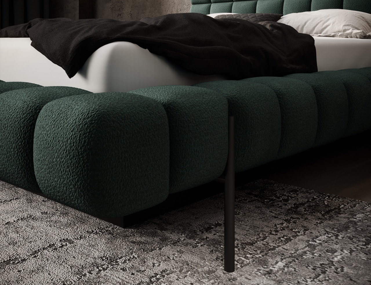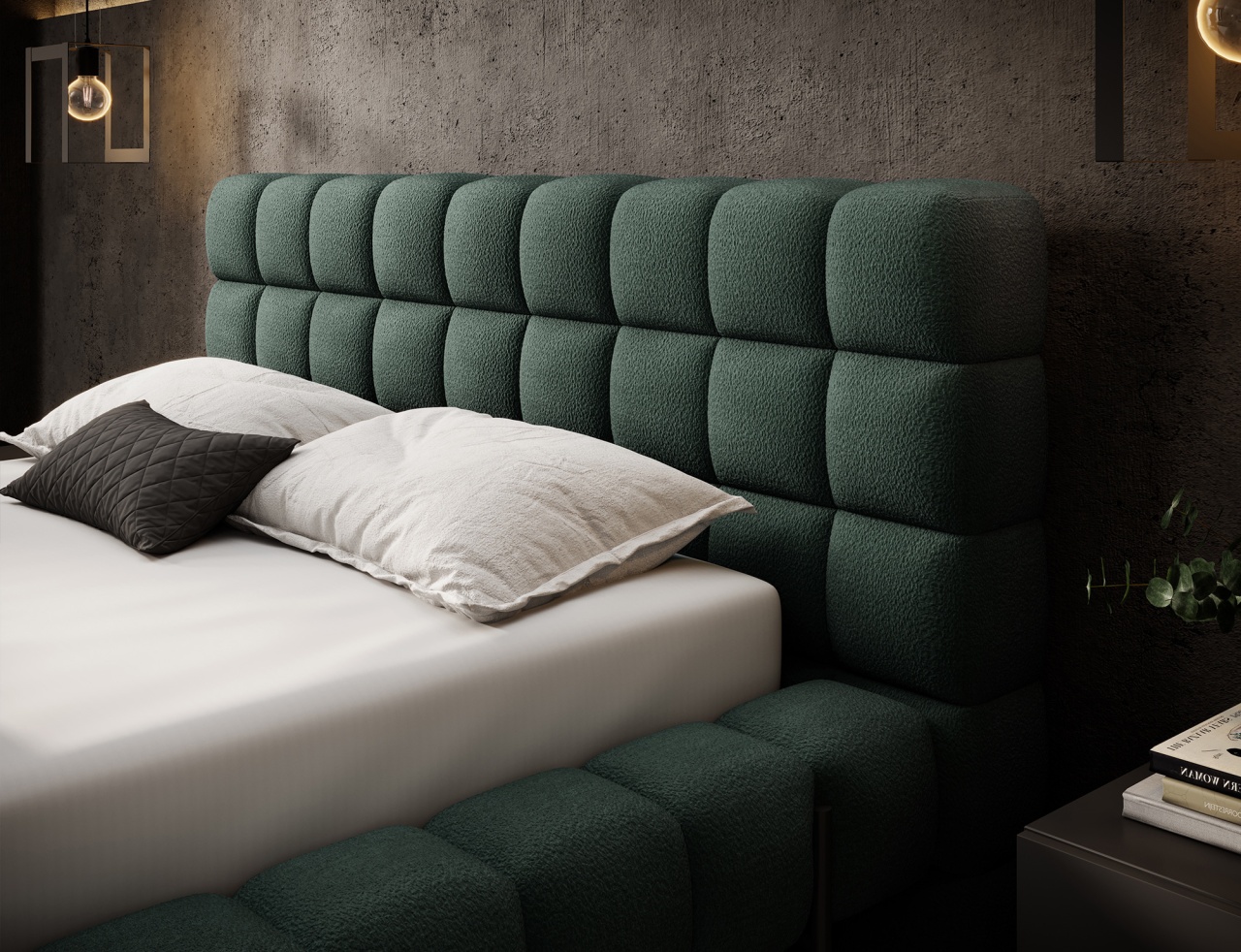 Patul Magentta reprezintă o combinație de design modern, funcționalitate și confort deosebit. Datorită spatelui tapițat, patul are un aspect extrem de elegant și adaugă o notă de căldură oricărui dormitor. Structura solidă și spătarul umplut cu spumă T2130 oferă un suport excelent și confort atât pentru somn, cât și pentru relaxare. Modelul este disponibil în trei dimensiuni: 140 cm, 160 cm și 180 cm, permițând adaptarea acestuia la dimensiunea camerei și la preferințele individuale. Cadru metalic include 36 de lamele care susțin uniform salteaua (se achiziționează separat), sporind durabilitatea construcției și confortul utilizării. Piciorul negru din metal oferă o bază solidă și accentuează caracterul minimalist și modern al patului. Un avantaj suplimentar este lada de depozitare pentru lenjerie, care permite stocarea practică a plapumilor, pernelor sau altor textile, economisind spațiu în cameră. Patul Magentta este alegerea ideală pentru cei care apreciază stilul modern, confortul și soluțiile funcționale. Dimensiuni: Lățimea: 184 Lungimea: 244 cm Înălțimea: 106 Înălțimea șezutului: 44 cm Suprafață de dormit: 140x200 cm Înălțimea picioarelor: 21 cm Recipient pentru depozitarea așternuturilor: 177x100x29cm Salteaua NU este inclusă! Produsul nu este montat, montarea este rapidă și ușoară. Produsul este personalizabil, culoarea și materialul se aleg pe baza paletarelor la cererea clientului. Prețul poate suferi modificări în funcție de grupa de material aleasă.