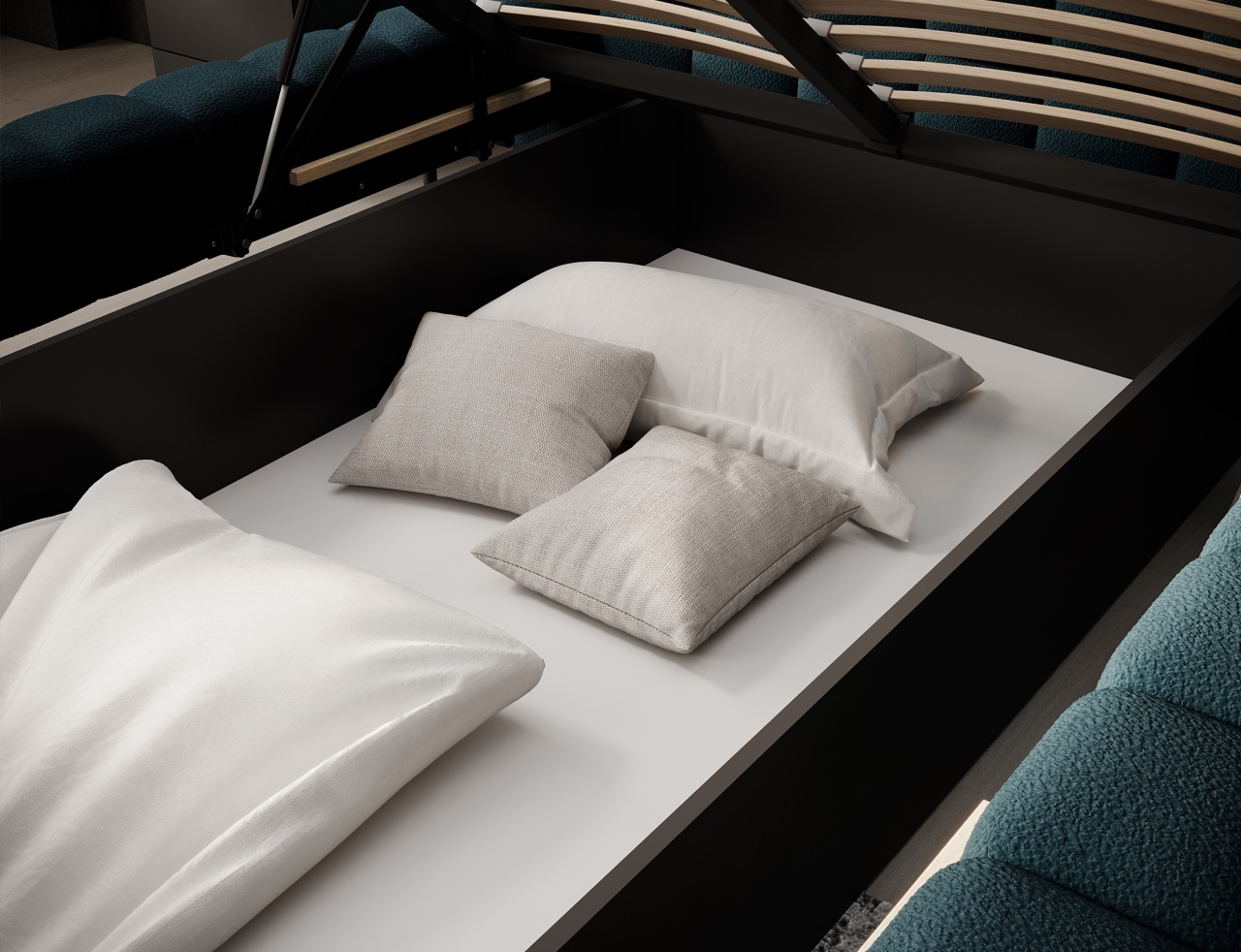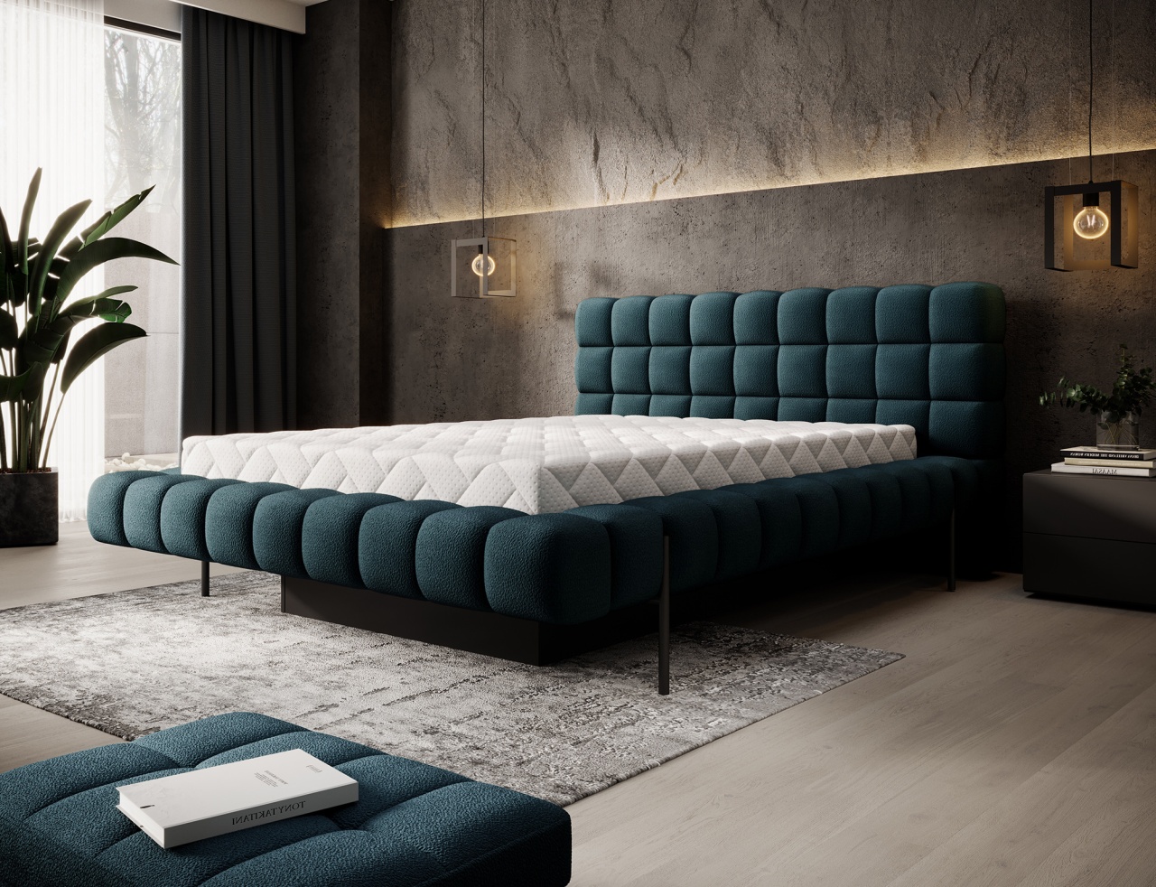 Patul Magentta reprezintă o combinație de design modern, funcționalitate și confort deosebit. Datorită spatelui tapițat, patul are un aspect extrem de elegant și adaugă o notă de căldură oricărui dormitor. Structura solidă și spătarul umplut cu spumă T2130 oferă un suport excelent și confort atât pentru somn, cât și pentru relaxare. Modelul este disponibil în trei dimensiuni: 140 cm, 160 cm și 180 cm, permițând adaptarea acestuia la dimensiunea camerei și la preferințele individuale. Cadru metalic include 36 de lamele care susțin uniform salteaua (se achiziționează separat), sporind durabilitatea construcției și confortul utilizării. Piciorul negru din metal oferă o bază solidă și accentuează caracterul minimalist și modern al patului. Un avantaj suplimentar este lada de depozitare pentru lenjerie, care permite stocarea practică a plapumilor, pernelor sau altor textile, economisind spațiu în cameră. Patul Magentta este alegerea ideală pentru cei care apreciază stilul modern, confortul și soluțiile funcționale. Dimensiuni: Lățimea: 184 Lungimea: 244 cm Înălțimea: 106 Înălțimea șezutului: 44 cm Suprafață de dormit: 140x200 cm Înălțimea picioarelor: 21 cm Recipient pentru depozitarea așternuturilor: 177x100x29cm Salteaua NU este inclusă! Produsul nu este montat, montarea este rapidă și ușoară. Produsul este personalizabil, culoarea și materialul se aleg pe baza paletarelor la cererea clientului. Prețul poate suferi modificări în funcție de grupa de material aleasă.