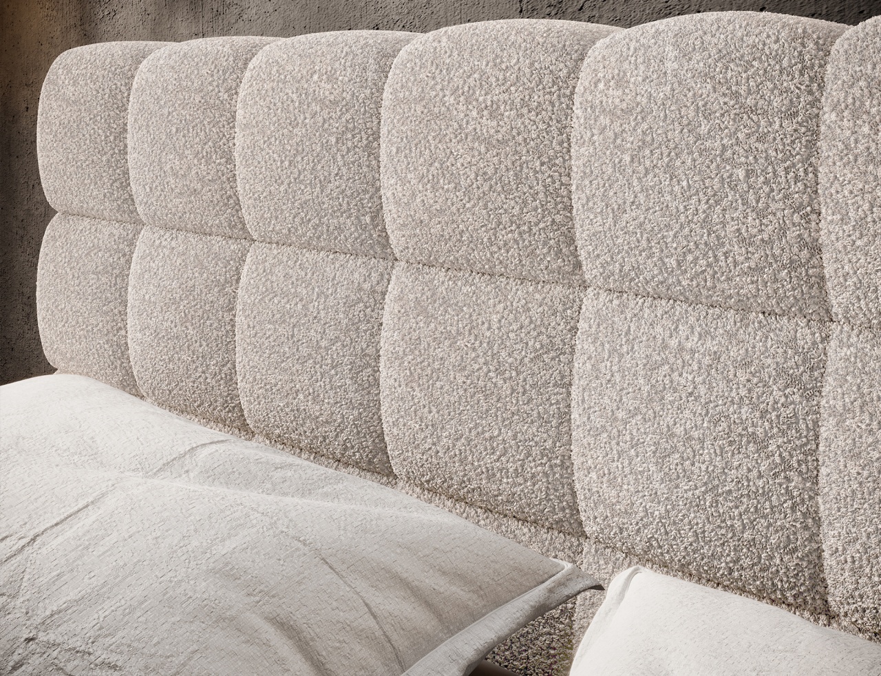 Patul Magentta reprezintă o combinație de design modern, funcționalitate și confort deosebit. Datorită spatelui tapițat, patul are un aspect extrem de elegant și adaugă o notă de căldură oricărui dormitor. Structura solidă și spătarul umplut cu spumă T2130 oferă un suport excelent și confort atât pentru somn, cât și pentru relaxare. Modelul este disponibil în trei dimensiuni: 140 cm, 160 cm și 180 cm, permițând adaptarea acestuia la dimensiunea camerei și la preferințele individuale. Cadru metalic include 36 de lamele care susțin uniform salteaua (se achiziționează separat), sporind durabilitatea construcției și confortul utilizării. Piciorul negru din metal oferă o bază solidă și accentuează caracterul minimalist și modern al patului. Un avantaj suplimentar este lada de depozitare pentru lenjerie, care permite stocarea practică a plapumilor, pernelor sau altor textile, economisind spațiu în cameră. Patul Magentta este alegerea ideală pentru cei care apreciază stilul modern, confortul și soluțiile funcționale. Dimensiuni: Lățimea: 184 Lungimea: 244 cm Înălțimea: 106 Înălțimea șezutului: 44 cm Suprafață de dormit: 140x200 cm Înălțimea picioarelor: 21 cm Recipient pentru depozitarea așternuturilor: 177x100x29cm Salteaua NU este inclusă! Produsul nu este montat, montarea este rapidă și ușoară. Produsul este personalizabil, culoarea și materialul se aleg pe baza paletarelor la cererea clientului. Prețul poate suferi modificări în funcție de grupa de material aleasă.