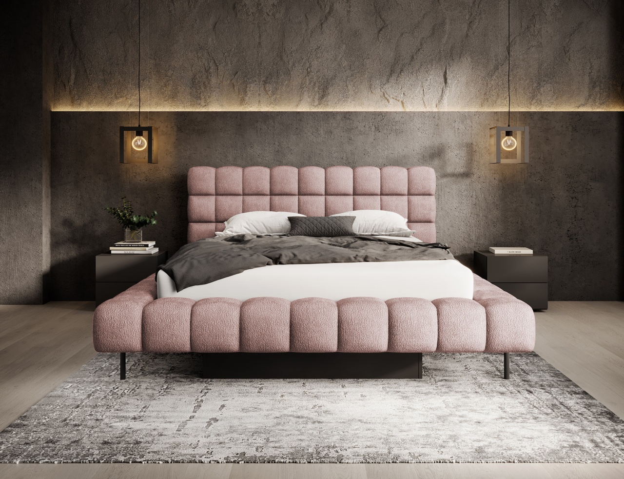 Patul Magentta reprezintă o combinație de design modern, funcționalitate și confort deosebit. Datorită spatelui tapițat, patul are un aspect extrem de elegant și adaugă o notă de căldură oricărui dormitor. Structura solidă și spătarul umplut cu spumă T2130 oferă un suport excelent și confort atât pentru somn, cât și pentru relaxare. Modelul este disponibil în trei dimensiuni: 140 cm, 160 cm și 180 cm, permițând adaptarea acestuia la dimensiunea camerei și la preferințele individuale. Cadru metalic include 36 de lamele care susțin uniform salteaua (se achiziționează separat), sporind durabilitatea construcției și confortul utilizării. Piciorul negru din metal oferă o bază solidă și accentuează caracterul minimalist și modern al patului. Un avantaj suplimentar este lada de depozitare pentru lenjerie, care permite stocarea practică a plapumilor, pernelor sau altor textile, economisind spațiu în cameră. Patul Magentta este alegerea ideală pentru cei care apreciază stilul modern, confortul și soluțiile funcționale. Dimensiuni: Lățimea: 184 Lungimea: 244 cm Înălțimea: 106 Înălțimea șezutului: 44 cm Suprafață de dormit: 140x200 cm Înălțimea picioarelor: 21 cm Recipient pentru depozitarea așternuturilor: 177x100x29cm Salteaua NU este inclusă! Produsul nu este montat, montarea este rapidă și ușoară. Produsul este personalizabil, culoarea și materialul se aleg pe baza paletarelor la cererea clientului. Prețul poate suferi modificări în funcție de grupa de material aleasă.