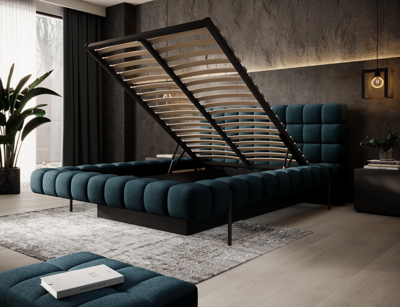 Patul Magentta reprezintă o combinație de design modern, funcționalitate și confort deosebit. Datorită spatelui tapițat, patul are un aspect extrem de elegant și adaugă o notă de căldură oricărui dormitor. Structura solidă și spătarul umplut cu spumă T2130 oferă un suport excelent și confort atât pentru somn, cât și pentru relaxare. Modelul este disponibil în trei dimensiuni: 140 cm, 160 cm și 180 cm, permițând adaptarea acestuia la dimensiunea camerei și la preferințele individuale. Cadru metalic include 36 de lamele care susțin uniform salteaua (se achiziționează separat), sporind durabilitatea construcției și confortul utilizării. Piciorul negru din metal oferă o bază solidă și accentuează caracterul minimalist și modern al patului. Un avantaj suplimentar este lada de depozitare pentru lenjerie, care permite stocarea practică a plapumilor, pernelor sau altor textile, economisind spațiu în cameră. Patul Magentta este alegerea ideală pentru cei care apreciază stilul modern, confortul și soluțiile funcționale. Dimensiuni: Lățimea: 204 Lungimea: 244 cm Înălțimea: 106 Înălțimea șezutului: 44 cm Suprafață de dormit: 160x200 cm Înălțimea picioarelor: 21 cm Recipient pentru depozitarea așternuturilor: 177x120x29cm Salteaua NU este inclusă! Produsul nu este montat, montarea este rapidă și ușoară. Produsul este personalizabil, culoarea și materialul se aleg pe baza paletarelor la cererea clientului. Prețul poate suferi modificări în funcție de grupa de material aleasă.