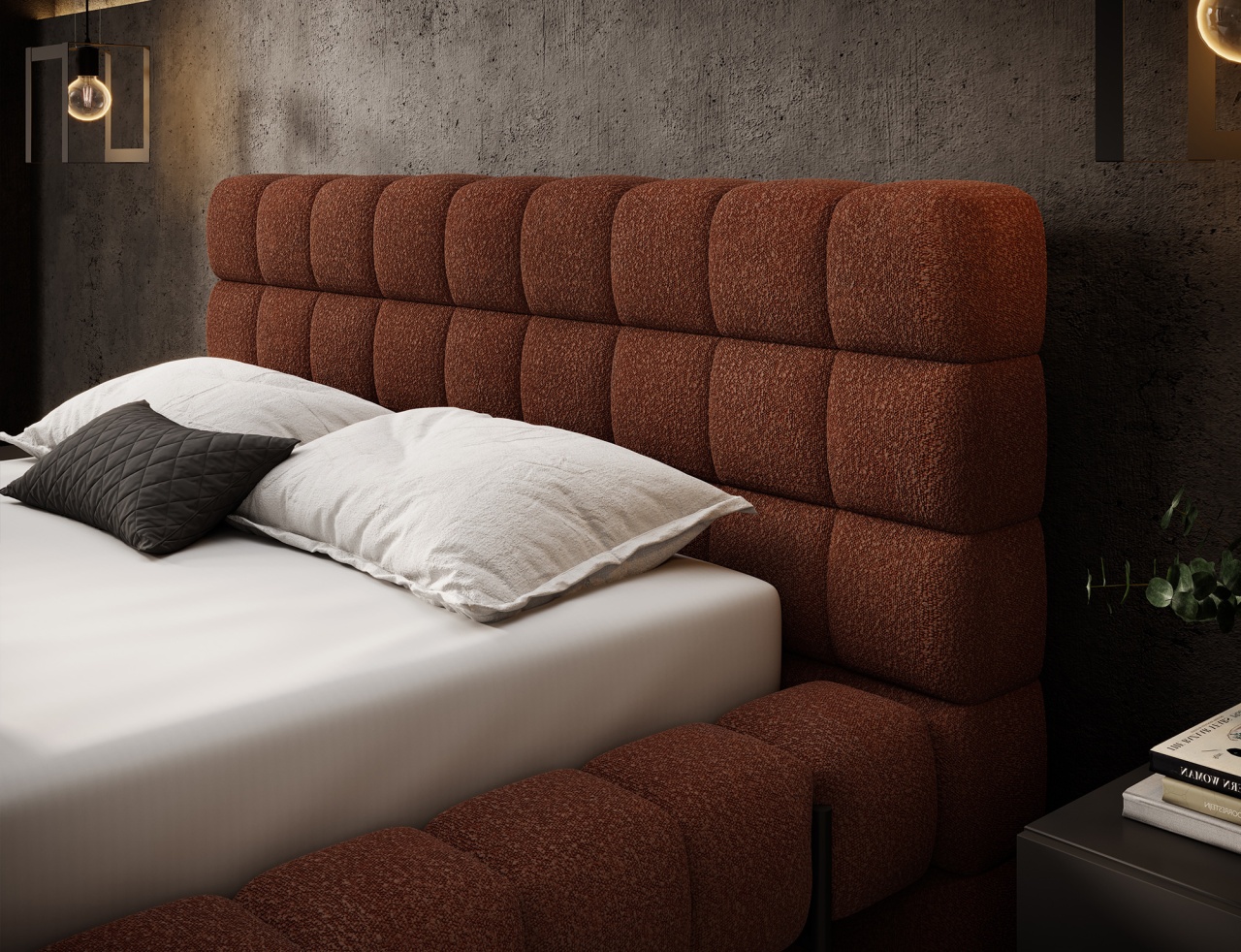 Patul Magentta reprezintă o combinație de design modern, funcționalitate și confort deosebit. Datorită spatelui tapițat, patul are un aspect extrem de elegant și adaugă o notă de căldură oricărui dormitor. Structura solidă și spătarul umplut cu spumă T2130 oferă un suport excelent și confort atât pentru somn, cât și pentru relaxare. Modelul este disponibil în trei dimensiuni: 140 cm, 160 cm și 180 cm, permițând adaptarea acestuia la dimensiunea camerei și la preferințele individuale. Cadru metalic include 36 de lamele care susțin uniform salteaua (se achiziționează separat), sporind durabilitatea construcției și confortul utilizării. Piciorul negru din metal oferă o bază solidă și accentuează caracterul minimalist și modern al patului. Un avantaj suplimentar este lada de depozitare pentru lenjerie, care permite stocarea practică a plapumilor, pernelor sau altor textile, economisind spațiu în cameră. Patul Magentta este alegerea ideală pentru cei care apreciază stilul modern, confortul și soluțiile funcționale. Dimensiuni: Lățimea: 204 Lungimea: 244 cm Înălțimea: 106 Înălțimea șezutului: 44 cm Suprafață de dormit: 160x200 cm Înălțimea picioarelor: 21 cm Recipient pentru depozitarea așternuturilor: 177x120x29cm Salteaua NU este inclusă! Produsul nu este montat, montarea este rapidă și ușoară. Produsul este personalizabil, culoarea și materialul se aleg pe baza paletarelor la cererea clientului. Prețul poate suferi modificări în funcție de grupa de material aleasă.