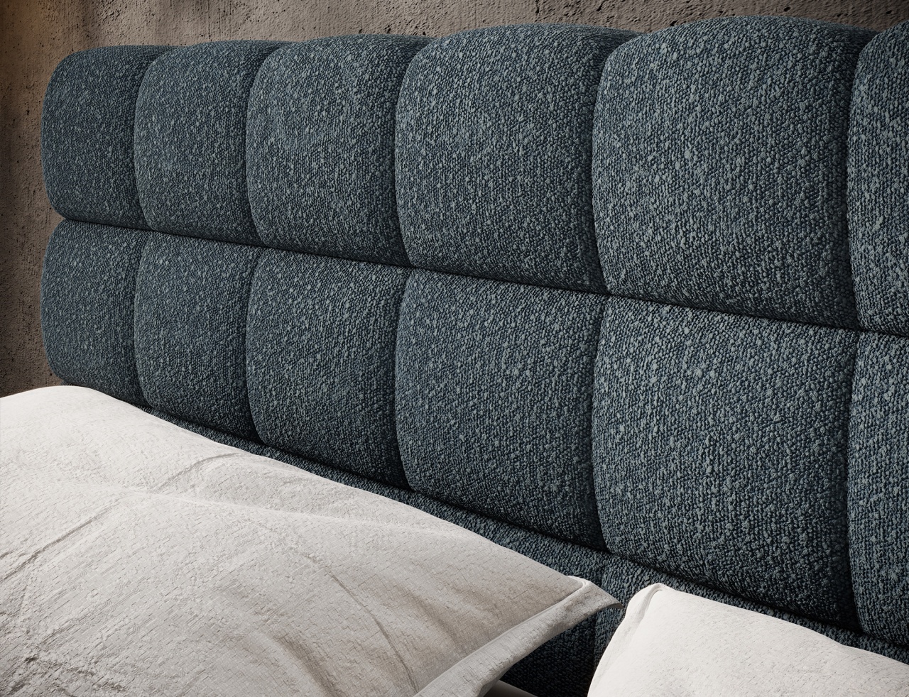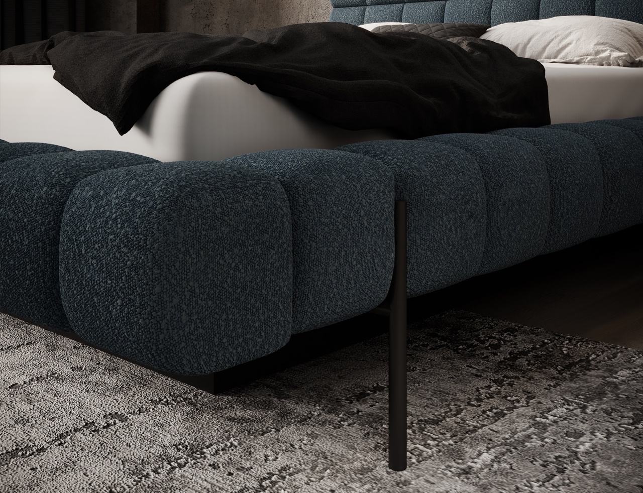 Patul Magentta reprezintă o combinație de design modern, funcționalitate și confort deosebit. Datorită spatelui tapițat, patul are un aspect extrem de elegant și adaugă o notă de căldură oricărui dormitor. Structura solidă și spătarul umplut cu spumă T2130 oferă un suport excelent și confort atât pentru somn, cât și pentru relaxare. Modelul este disponibil în trei dimensiuni: 140 cm, 160 cm și 180 cm, permițând adaptarea acestuia la dimensiunea camerei și la preferințele individuale. Cadru metalic include 36 de lamele care susțin uniform salteaua (se achiziționează separat), sporind durabilitatea construcției și confortul utilizării. Piciorul negru din metal oferă o bază solidă și accentuează caracterul minimalist și modern al patului. Un avantaj suplimentar este lada de depozitare pentru lenjerie, care permite stocarea practică a plapumilor, pernelor sau altor textile, economisind spațiu în cameră. Patul Magentta este alegerea ideală pentru cei care apreciază stilul modern, confortul și soluțiile funcționale. Dimensiuni: Lățimea: 204 Lungimea: 244 cm Înălțimea: 106 Înălțimea șezutului: 44 cm Suprafață de dormit: 160x200 cm Înălțimea picioarelor: 21 cm Recipient pentru depozitarea așternuturilor: 177x120x29cm Salteaua NU este inclusă! Produsul nu este montat, montarea este rapidă și ușoară. Produsul este personalizabil, culoarea și materialul se aleg pe baza paletarelor la cererea clientului. Prețul poate suferi modificări în funcție de grupa de material aleasă.