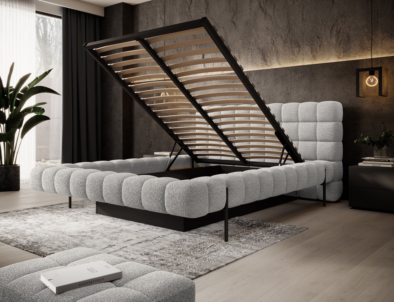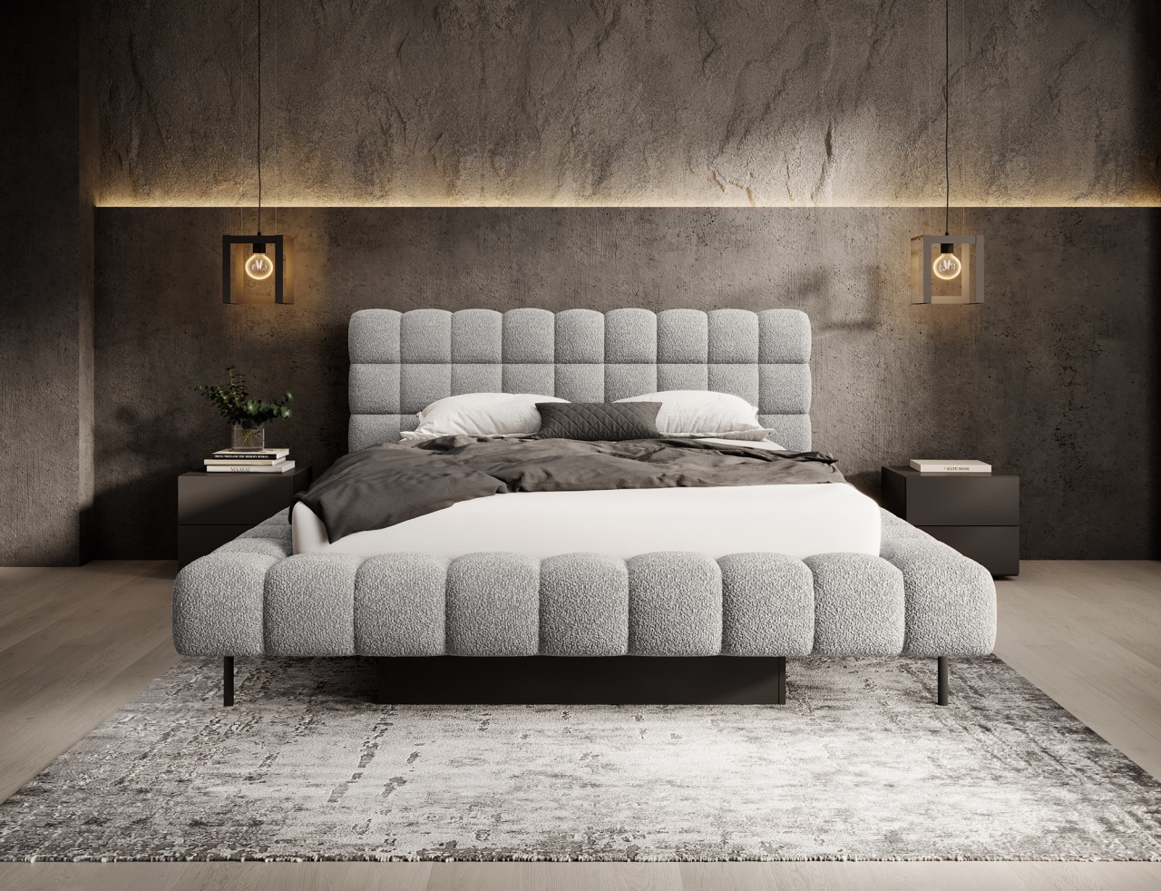 Patul Magentta reprezintă o combinație de design modern, funcționalitate și confort deosebit. Datorită spatelui tapițat, patul are un aspect extrem de elegant și adaugă o notă de căldură oricărui dormitor. Structura solidă și spătarul umplut cu spumă T2130 oferă un suport excelent și confort atât pentru somn, cât și pentru relaxare. Modelul este disponibil în trei dimensiuni: 140 cm, 160 cm și 180 cm, permițând adaptarea acestuia la dimensiunea camerei și la preferințele individuale. Cadru metalic include 36 de lamele care susțin uniform salteaua (se achiziționează separat), sporind durabilitatea construcției și confortul utilizării. Piciorul negru din metal oferă o bază solidă și accentuează caracterul minimalist și modern al patului. Un avantaj suplimentar este lada de depozitare pentru lenjerie, care permite stocarea practică a plapumilor, pernelor sau altor textile, economisind spațiu în cameră. Patul Magentta este alegerea ideală pentru cei care apreciază stilul modern, confortul și soluțiile funcționale. Dimensiuni: Lățimea: 204 Lungimea: 244 cm Înălțimea: 106 Înălțimea șezutului: 44 cm Suprafață de dormit: 160x200 cm Înălțimea picioarelor: 21 cm Recipient pentru depozitarea așternuturilor: 177x120x29cm Salteaua NU este inclusă! Produsul nu este montat, montarea este rapidă și ușoară. Produsul este personalizabil, culoarea și materialul se aleg pe baza paletarelor la cererea clientului. Prețul poate suferi modificări în funcție de grupa de material aleasă.