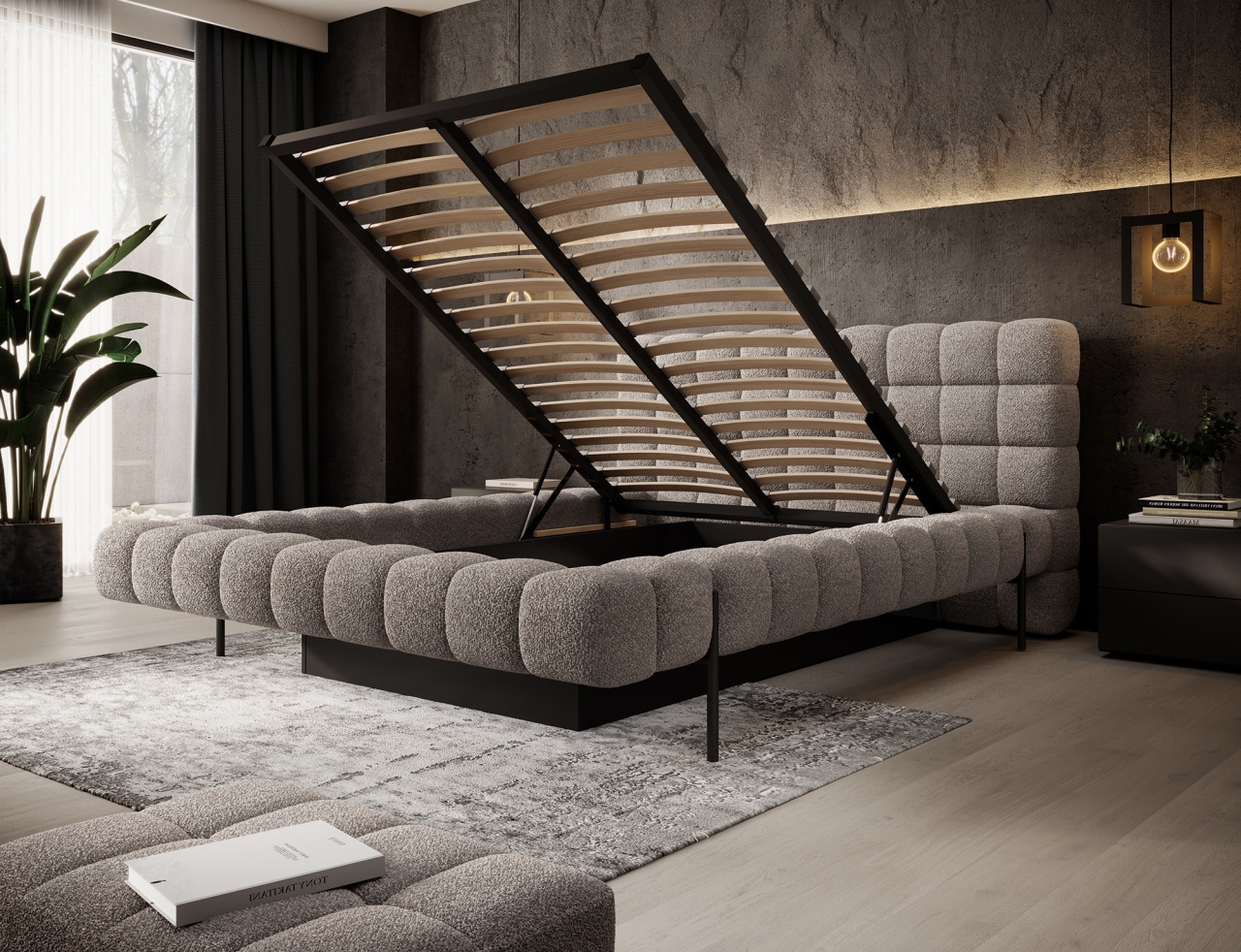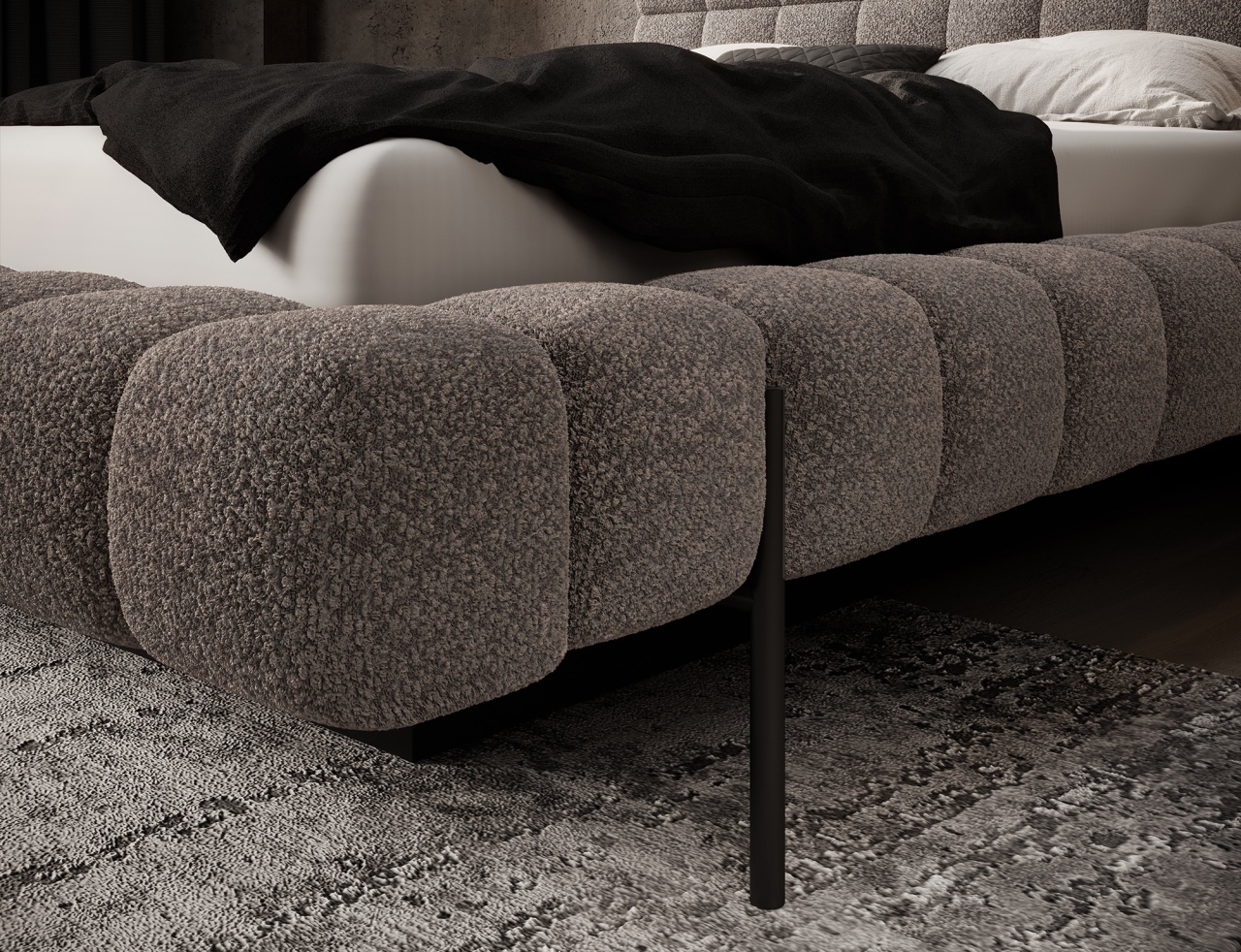 Patul Magentta reprezintă o combinație de design modern, funcționalitate și confort deosebit. Datorită spatelui tapițat, patul are un aspect extrem de elegant și adaugă o notă de căldură oricărui dormitor. Structura solidă și spătarul umplut cu spumă T2130 oferă un suport excelent și confort atât pentru somn, cât și pentru relaxare. Modelul este disponibil în trei dimensiuni: 140 cm, 160 cm și 180 cm, permițând adaptarea acestuia la dimensiunea camerei și la preferințele individuale. Cadru metalic include 36 de lamele care susțin uniform salteaua (se achiziționează separat), sporind durabilitatea construcției și confortul utilizării. Piciorul negru din metal oferă o bază solidă și accentuează caracterul minimalist și modern al patului. Un avantaj suplimentar este lada de depozitare pentru lenjerie, care permite stocarea practică a plapumilor, pernelor sau altor textile, economisind spațiu în cameră. Patul Magentta este alegerea ideală pentru cei care apreciază stilul modern, confortul și soluțiile funcționale. Dimensiuni: Lățimea: 204 Lungimea: 244 cm Înălțimea: 106 Înălțimea șezutului: 44 cm Suprafață de dormit: 160x200 cm Înălțimea picioarelor: 21 cm Recipient pentru depozitarea așternuturilor: 177x120x29cm Salteaua NU este inclusă! Produsul nu este montat, montarea este rapidă și ușoară. Produsul este personalizabil, culoarea și materialul se aleg pe baza paletarelor la cererea clientului. Prețul poate suferi modificări în funcție de grupa de material aleasă.