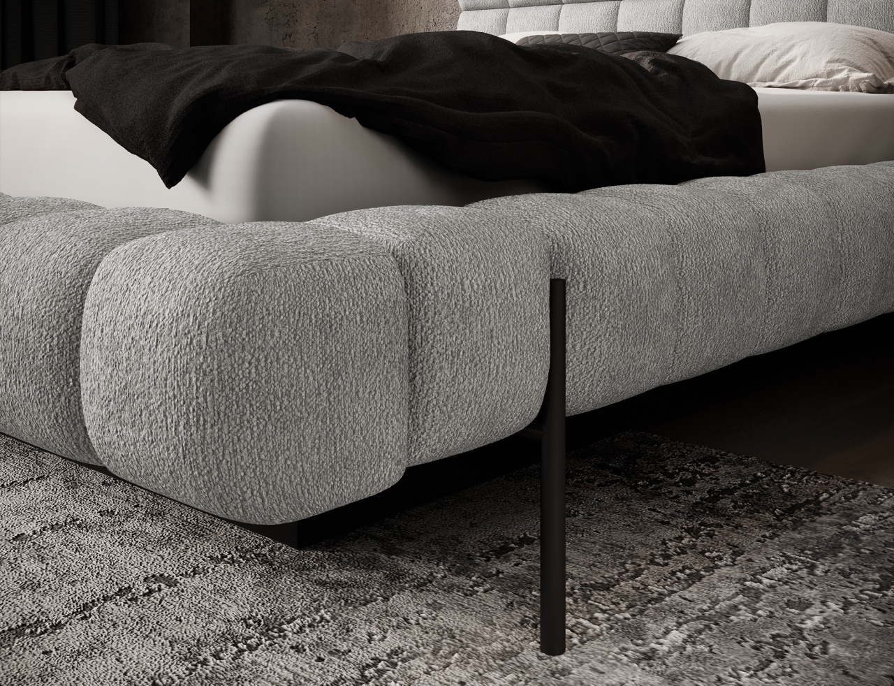 Patul Magentta reprezintă o combinație de design modern, funcționalitate și confort deosebit. Datorită spatelui tapițat, patul are un aspect extrem de elegant și adaugă o notă de căldură oricărui dormitor. Structura solidă și spătarul umplut cu spumă T2130 oferă un suport excelent și confort atât pentru somn, cât și pentru relaxare. Modelul este disponibil în trei dimensiuni: 140 cm, 160 cm și 180 cm, permițând adaptarea acestuia la dimensiunea camerei și la preferințele individuale. Cadru metalic include 36 de lamele care susțin uniform salteaua (se achiziționează separat), sporind durabilitatea construcției și confortul utilizării. Piciorul negru din metal oferă o bază solidă și accentuează caracterul minimalist și modern al patului. Un avantaj suplimentar este lada de depozitare pentru lenjerie, care permite stocarea practică a plapumilor, pernelor sau altor textile, economisind spațiu în cameră. Patul Magentta este alegerea ideală pentru cei care apreciază stilul modern, confortul și soluțiile funcționale. Dimensiuni: Lățimea: 204 Lungimea: 244 cm Înălțimea: 106 Înălțimea șezutului: 44 cm Suprafață de dormit: 160x200 cm Înălțimea picioarelor: 21 cm Recipient pentru depozitarea așternuturilor: 177x120x29cm Salteaua NU este inclusă! Produsul nu este montat, montarea este rapidă și ușoară. Produsul este personalizabil, culoarea și materialul se aleg pe baza paletarelor la cererea clientului. Prețul poate suferi modificări în funcție de grupa de material aleasă.