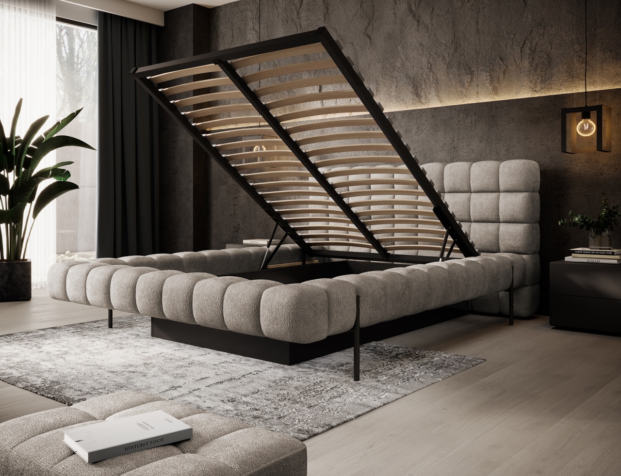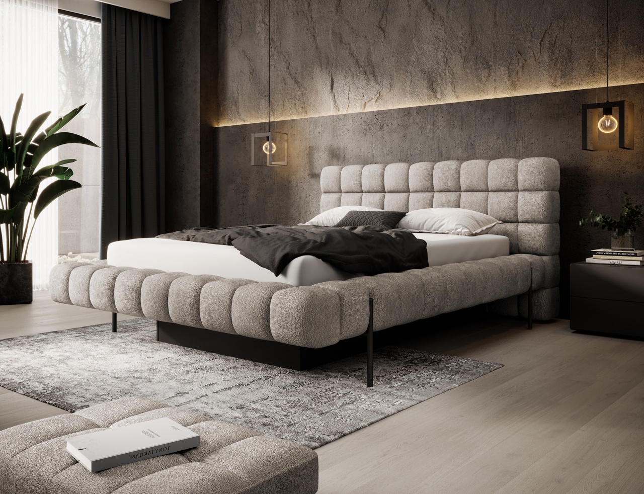 Patul Magentta reprezintă o combinație de design modern, funcționalitate și confort deosebit. Datorită spatelui tapițat, patul are un aspect extrem de elegant și adaugă o notă de căldură oricărui dormitor. Structura solidă și spătarul umplut cu spumă T2130 oferă un suport excelent și confort atât pentru somn, cât și pentru relaxare. Modelul este disponibil în trei dimensiuni: 140 cm, 160 cm și 180 cm, permițând adaptarea acestuia la dimensiunea camerei și la preferințele individuale. Cadru metalic include 36 de lamele care susțin uniform salteaua (se achiziționează separat), sporind durabilitatea construcției și confortul utilizării. Piciorul negru din metal oferă o bază solidă și accentuează caracterul minimalist și modern al patului. Un avantaj suplimentar este lada de depozitare pentru lenjerie, care permite stocarea practică a plapumilor, pernelor sau altor textile, economisind spațiu în cameră. Patul Magentta este alegerea ideală pentru cei care apreciază stilul modern, confortul și soluțiile funcționale. Dimensiuni: Lățimea: 204 Lungimea: 244 cm Înălțimea: 106 Înălțimea șezutului: 44 cm Suprafață de dormit: 160x200 cm Înălțimea picioarelor: 21 cm Recipient pentru depozitarea așternuturilor: 177x120x29cm Salteaua NU este inclusă! Produsul nu este montat, montarea este rapidă și ușoară. Produsul este personalizabil, culoarea și materialul se aleg pe baza paletarelor la cererea clientului. Prețul poate suferi modificări în funcție de grupa de material aleasă.