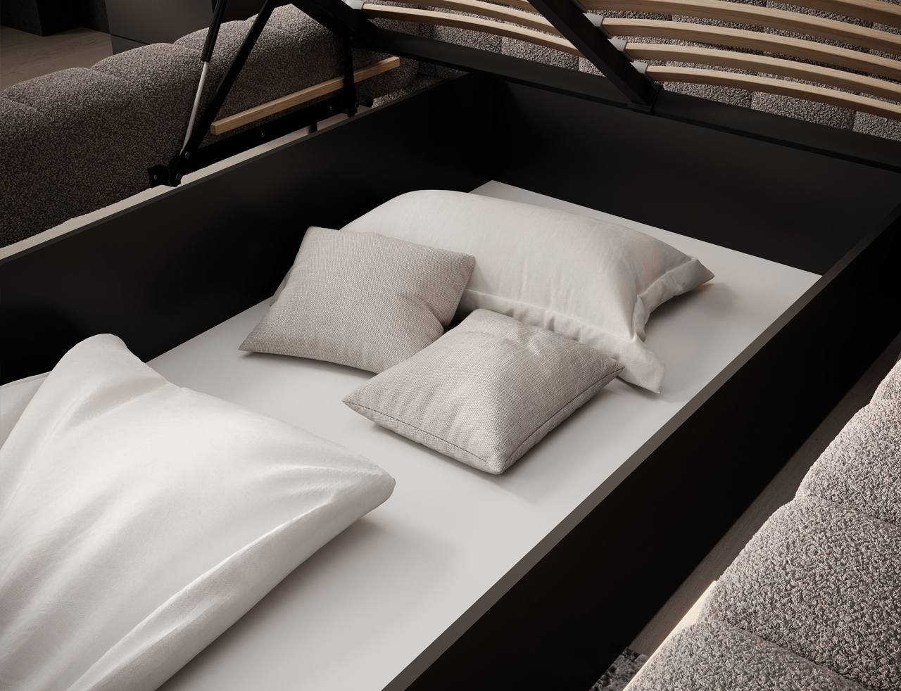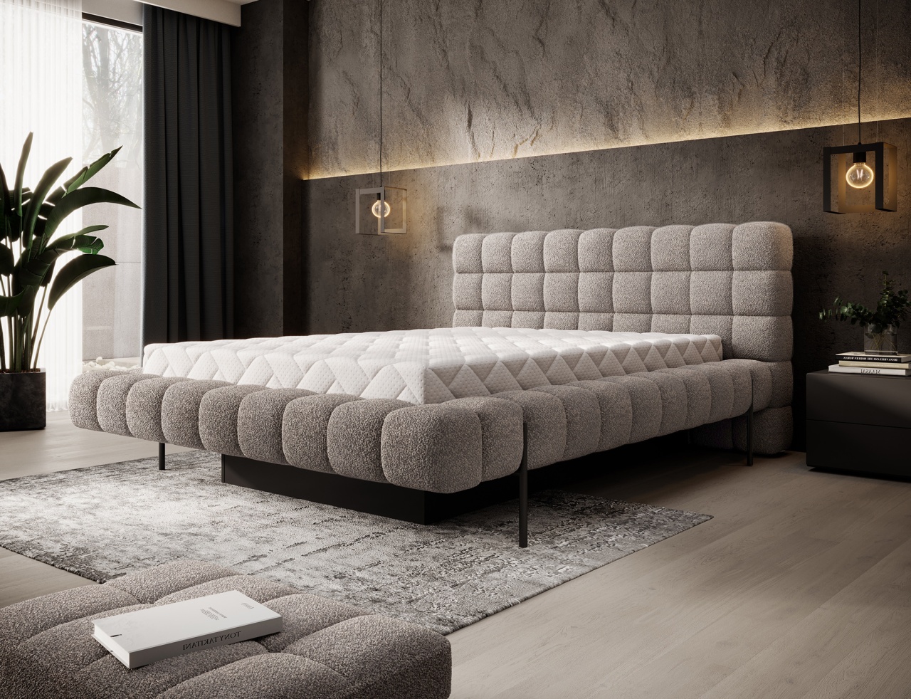 Patul Magentta reprezintă o combinație de design modern, funcționalitate și confort deosebit. Datorită spatelui tapițat, patul are un aspect extrem de elegant și adaugă o notă de căldură oricărui dormitor. Structura solidă și spătarul umplut cu spumă T2130 oferă un suport excelent și confort atât pentru somn, cât și pentru relaxare. Modelul este disponibil în trei dimensiuni: 140 cm, 160 cm și 180 cm, permițând adaptarea acestuia la dimensiunea camerei și la preferințele individuale. Cadru metalic include 36 de lamele care susțin uniform salteaua (se achiziționează separat), sporind durabilitatea construcției și confortul utilizării. Piciorul negru din metal oferă o bază solidă și accentuează caracterul minimalist și modern al patului. Un avantaj suplimentar este lada de depozitare pentru lenjerie, care permite stocarea practică a plapumilor, pernelor sau altor textile, economisind spațiu în cameră. Patul Magentta este alegerea ideală pentru cei care apreciază stilul modern, confortul și soluțiile funcționale. Dimensiuni: Lățimea: 224 Lungimea: 244 cm Înălțimea: 106 Înălțimea șezutului: 44 cm Suprafață de dormit: 180x200 cm Înălțimea picioarelor: 21 cm Recipient pentru depozitarea așternuturilor: 177x140x29cm Salteaua NU este inclusă! Produsul nu este montat, montarea este rapidă și ușoară. Produsul este personalizabil, culoarea și materialul se aleg pe baza paletarelor la cererea clientului. Prețul poate suferi modificări în funcție de grupa de material aleasă.