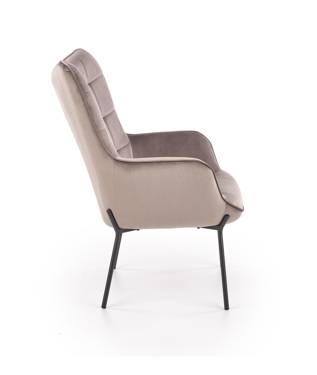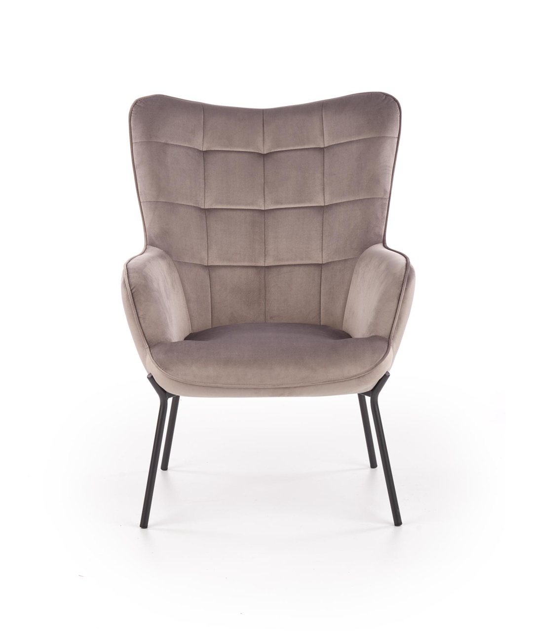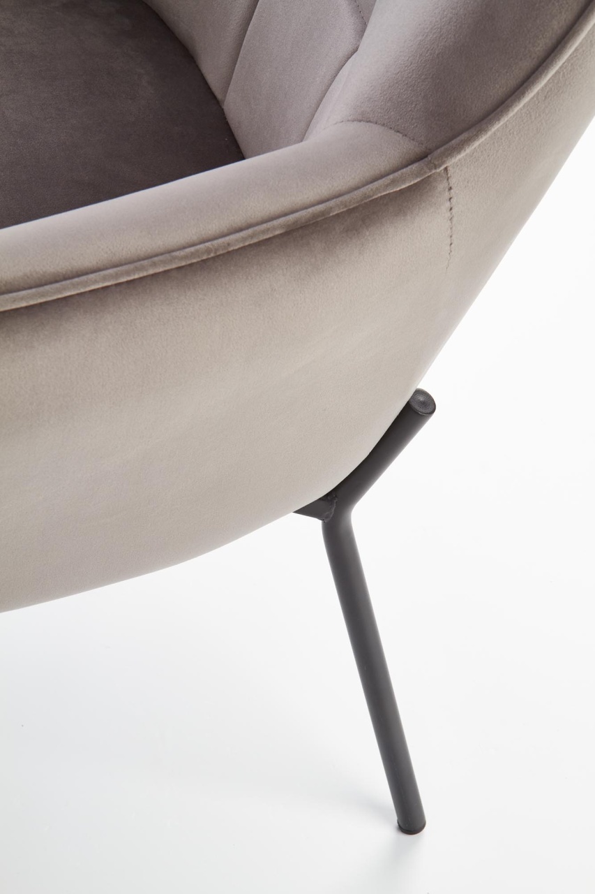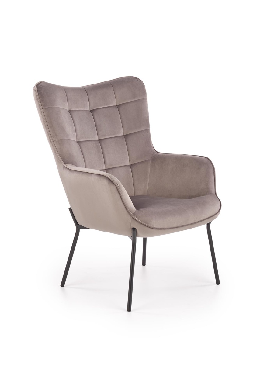 Fotoliu tapitat Castel gri - H 97 cm Fotoliul Castel este tapitat cu catifea, avand picioare din metal vopsit negru. In stil modern, confortabil si elegant, este ideal pentru camera de zi, dormitor, zone de relaxare, cafenele, birouri. Dimensiuni: 71 79 97 44 Produsul nu este montat, este destinat pentru auto-asamblare. Instructiunile de montaj vin in colet.