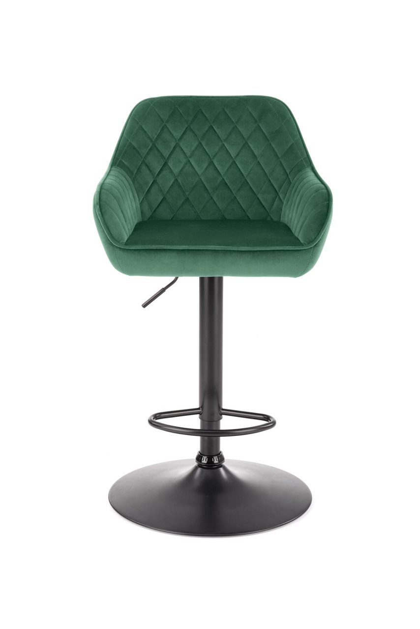 Scaun de Bar H-103 velvet verde este un scaun versatil, usor de asortat cu diferite stiluri de amenajare, sezut si spatar tapitate cu catifea de înaltă calitate, inaltime reglabila. O piesa de mobilier moderna, ce reprezinta un detaliu sofisticat al incaperii tale! Dimensiuni: 55 55 92-114 62-84 Latime: 55 cm Adancime: 55 cm Inaltimea totala: 92-114 cm Inaltimea sezutului fata de sol: 62-84 cm Detalii tehnice: Cadrul este realizat din metal. Tapiteria este confectionata din catifea. Culoare: Verde / Negru Mat Produsul nu este montat, este destinat pentru auto-asamblare. Instructiunile de montaj vin in colet.