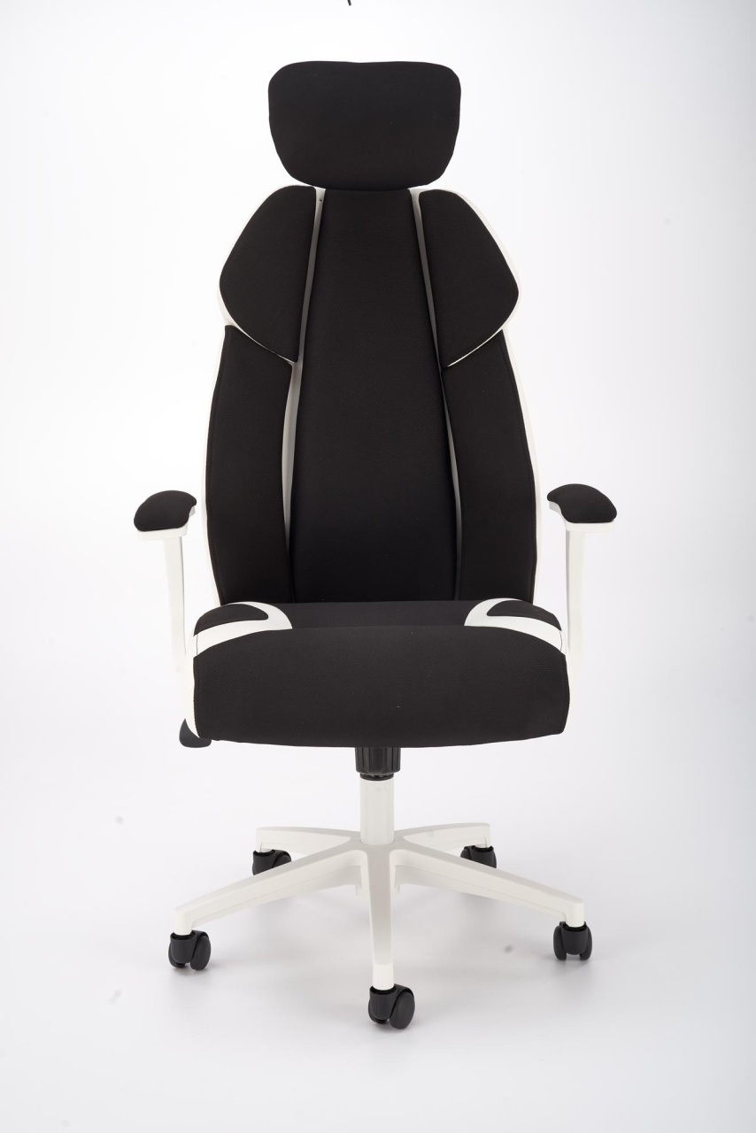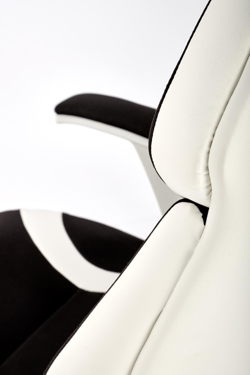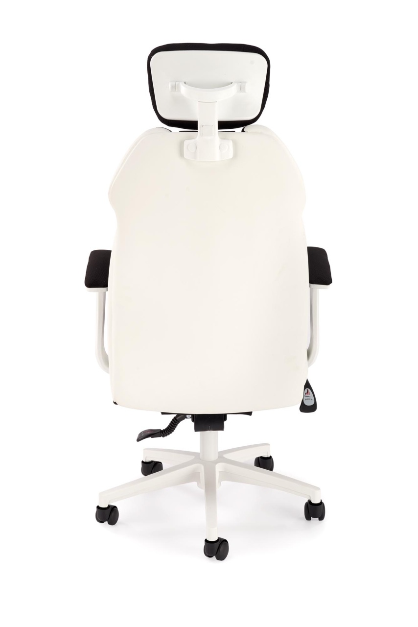 Scaun de birou Chrono negru alb Scaunul de birou Chrono impresioneaza prin ergonomia sa uimitoare oferind comoditate in munca si functionalitate. Scaunul are o tapiterie din piele ecologica moale, confortabila si usor de intretinut un spatar original si tetiera reglabila. Confortul oferit de acest scaun va creste calitatea muncii si eficienta utilizatorului. Scaunul este echipat cu mecanism tilt care permite balansarea si reglarea fina a inaltimii, blocarea spatarului in pozitia verticala si rotirea in jurul propriei axe. Baza solida din aluminiu formata din cinci brate este echipata cu roti concepute pentru suprafetele moi. Dimensiuni: 65 70 120-128 45-53 Latime: 65 cm Adancime: 70 cm Inaltime totala: 120-128 cm Inaltime pana la sezut: 45-53 cm Produsul nu este montat. Instructiunile de montaj se gasesc in colet.