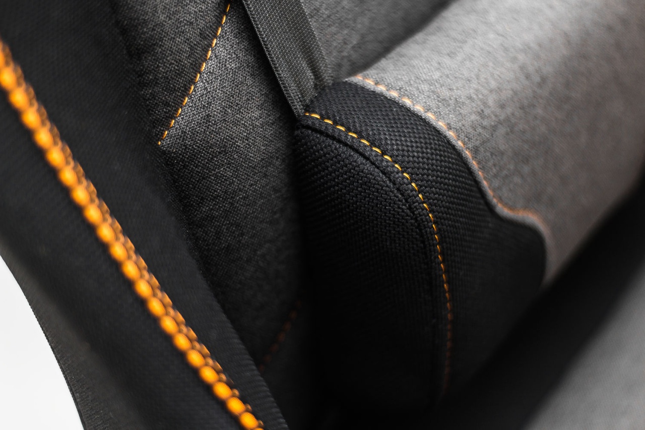 Scaunul de birou Evolve PRO este alegerea ideală pentru cei care doresc confort sporit și un design modern, cu personalitate. Combinația de culori – negru, gri, nisipiu și accente portocalii – adaugă energie spațiului de lucru, fără a compromite eleganța. Dimensiuni: Lățime: 67 cm Adâncime: 50 cm Înălțime totală: 120 - 130 cm Înălțime de la sol la șezut: 46 - 56 cm Greutate maximă: 120 kg Detalii tehnice: material: material textil, culoare: negru-gri-nisipiu-portocaliu Produsul nu este montat. Asamblarea este rapidă și ușoară, pe baza instrucțiunilor de montaj din colet.