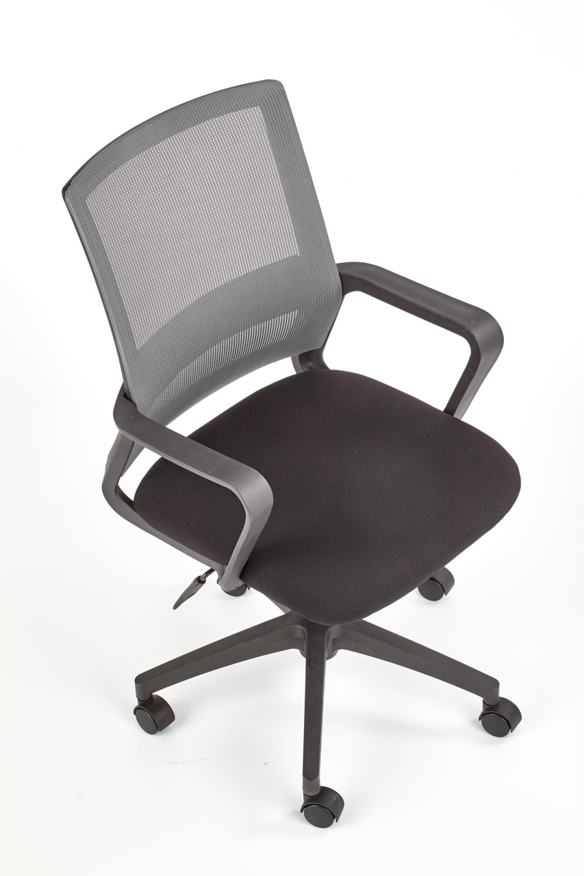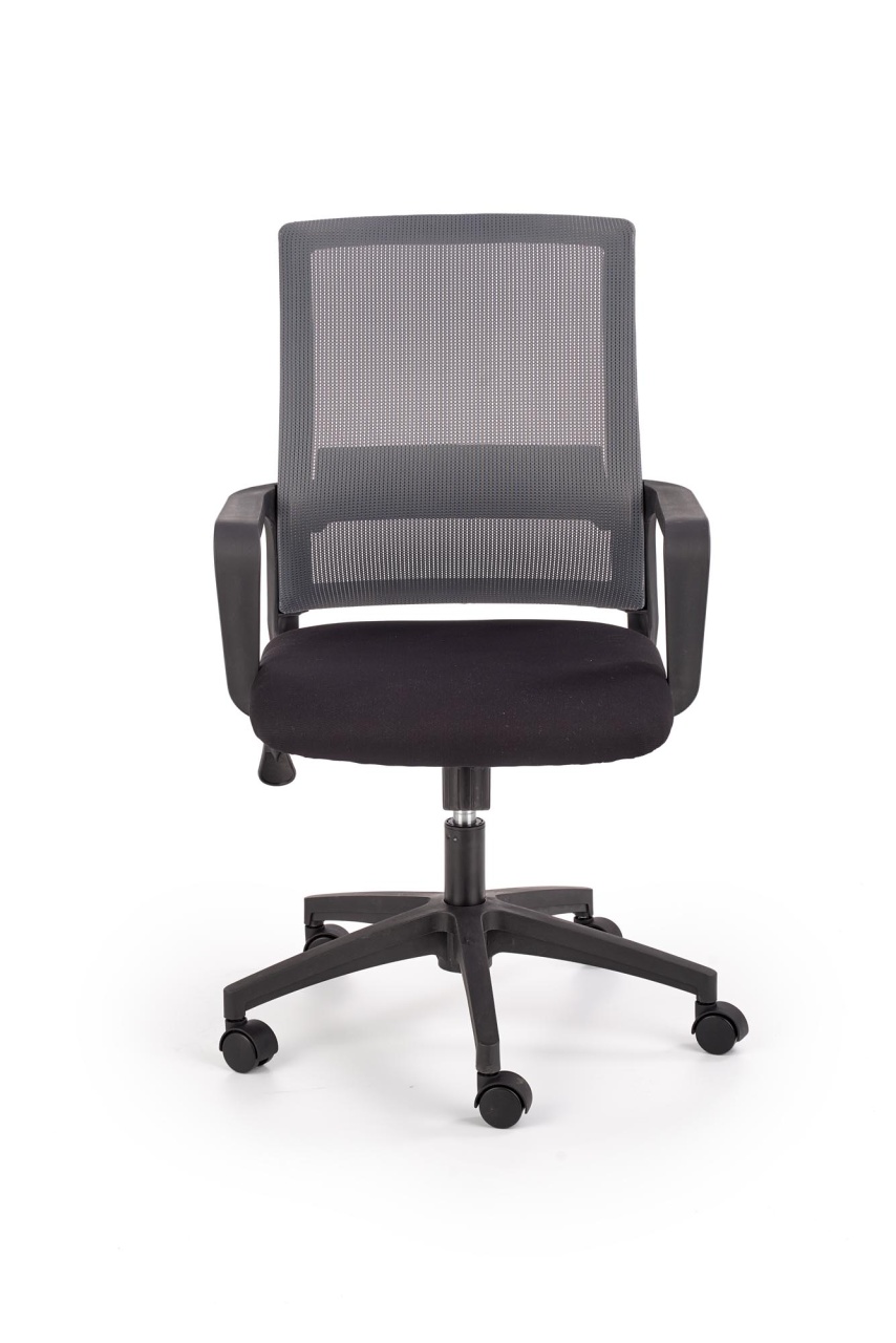 Scaun de birou Mauro negru gri Scaunul de birou Mauro este perfect pentru birou sau pentru camera de tineret. Scaunul este tapitat cu material cu rezistenta mare la abraziune. Spatarul este acoperit cu plasa din material care asigura un flux de aer care va fi apreciat in special in zilele calduroase. Scaunul este echipat cu mecanism tilt care permite balansarea si reglarea fina a inaltimii, blocarea spatarului in pozitia verticala si rotirea in jurul propriei axe. Baza solida formata din cinci brate este echipata cu roti pentru suprafete moi. Dimensiuni: 57 56 91-100 42-51 Latime: 57 cm Adancime: 56 cm Inaltime totala: 91-100 cm Inaltime pana la sezut: 42-51 cm Produsul nu este montat. Instructiunile de montaj se gasesc in colet.