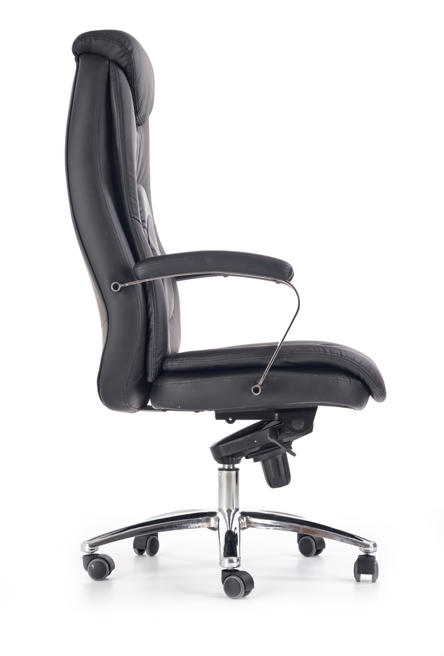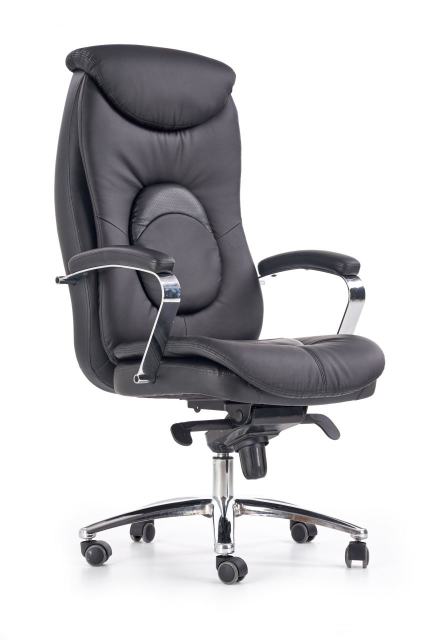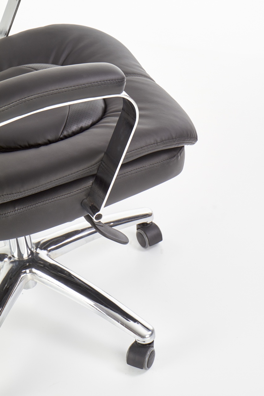 Scaun de birou Quad negru Scaunul de birou Quad are un design atractiv si robust, excelent pentru munca de la birou sau de acasa. Tapiteria din piele ecologica este foarte eleganta si confortabila in acelasi timp. Scaunul este echipat cu mecanism multibloc care permite balansarea si reglarea fina a inaltimii, blocarea spatarului in pozitia verticala si rotirea in jurul propriei axe. Cotierele moi acoperite cu piele ecologica ofera o pozitie confortabila a mainilor si a trupului in timpul utilizarii. Baza solida formata din cinci brate este echipata cu roti concepute pentru suprafetele moi. Dimensiuni: 63 70 124-132 47-55 Latime: 63 cm Adancime: 70 cm Inaltime totala: 124-132 cm Inaltime pana la sezut: 47-55 cm Produsul nu este montat. Instructiunile de montaj se gasesc in colet.