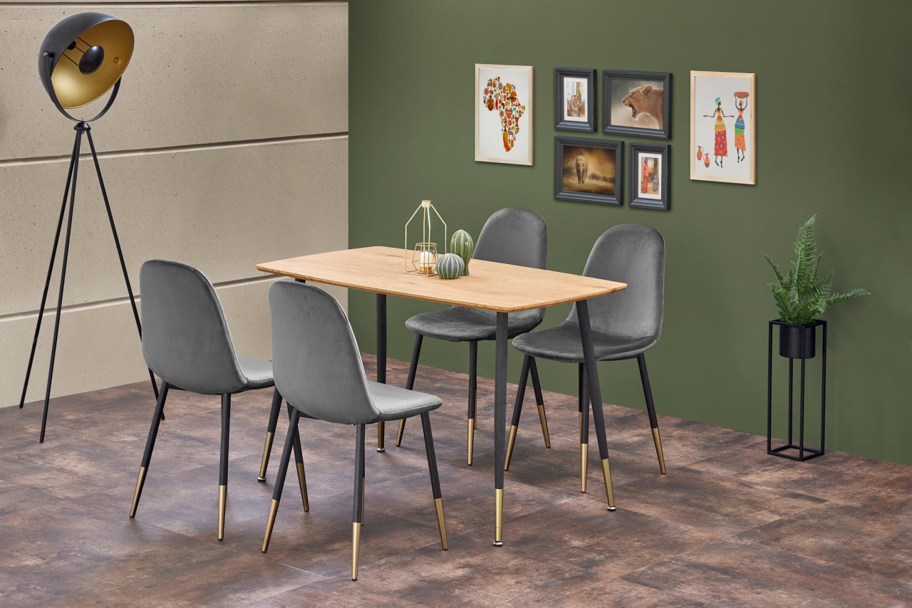 Scaunul K379 este solutia perfecta pentru interioare moderne. Scaunul este tapitat cu o catifea rezistenta si placuta la atingere. Aspectul scaunului va fi apreciat datorita modului simplu si elegant in care este construit. Structura solida este realizata din otel pulverizat cu vopsea si cromat auriu in parte de jos, cu un design aparte, care garanteaza durabilitatea, rezistenta si stabilitatea scaunului. Scaunul K379 este potrivit pentru infrumusetarea interiorului ca utilitate cat si ca un element decorativ deosebit. Dimensiuni: 45 48 88 48 Latime: 45 cm Adancime: 48 cm Inaltime totala: 88 cm Inaltime pana la sezut: 48 cm Produsul nu este montat. Instructiunile de montaj se gasesc in colet.