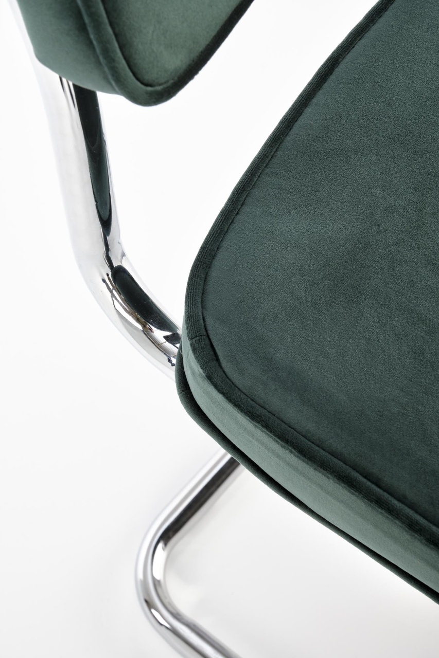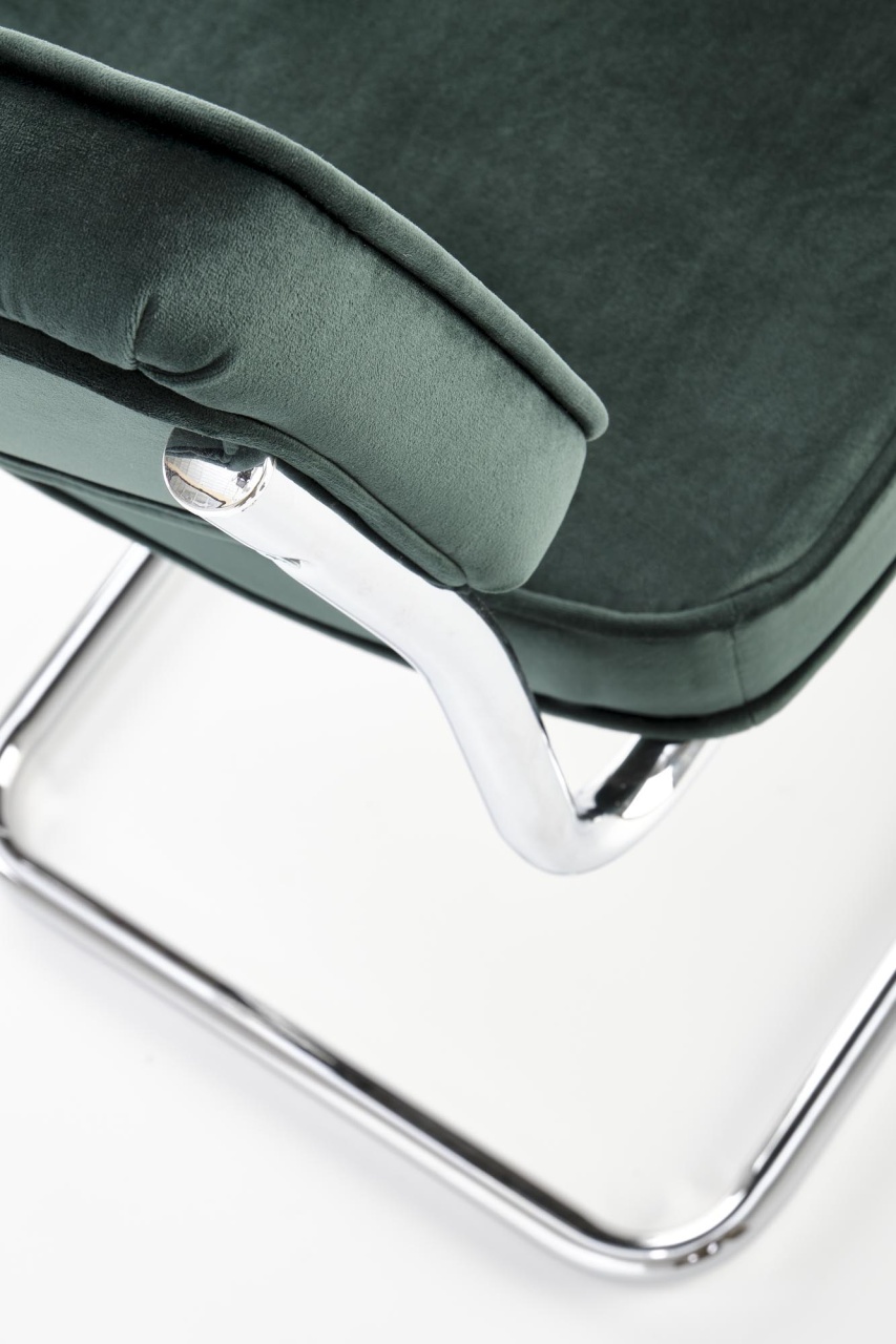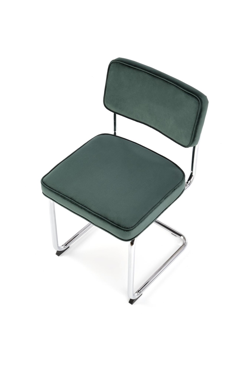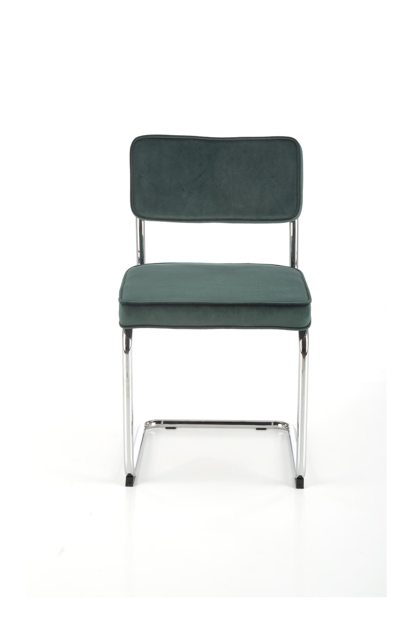 Scaun K510 velvet verde Scaun K510 velvet verde - are un design modern cu un spatar si sezut confortabil. Catifeaua folosita este de inalta calitate care asigura o utilizare indelungata si rezistenta sporita. Picioarele solide sunt realizate din otel care garanteaza durabilitatea, rezistenta si stabilitatea scaunului. Scaunul K510 este potrivit pentru interioarele moderne atat ca utilitate, cat si ca un element decorativ deosebit. Dimensiuni: 49 55 85 50 Latime: 49 cm Adancime: 55 cm Inaltime totala: 85 cm Inaltime pana la sezut: 50 cm Produsul nu este montat. Instructiunile de montaj se gasesc in colet.