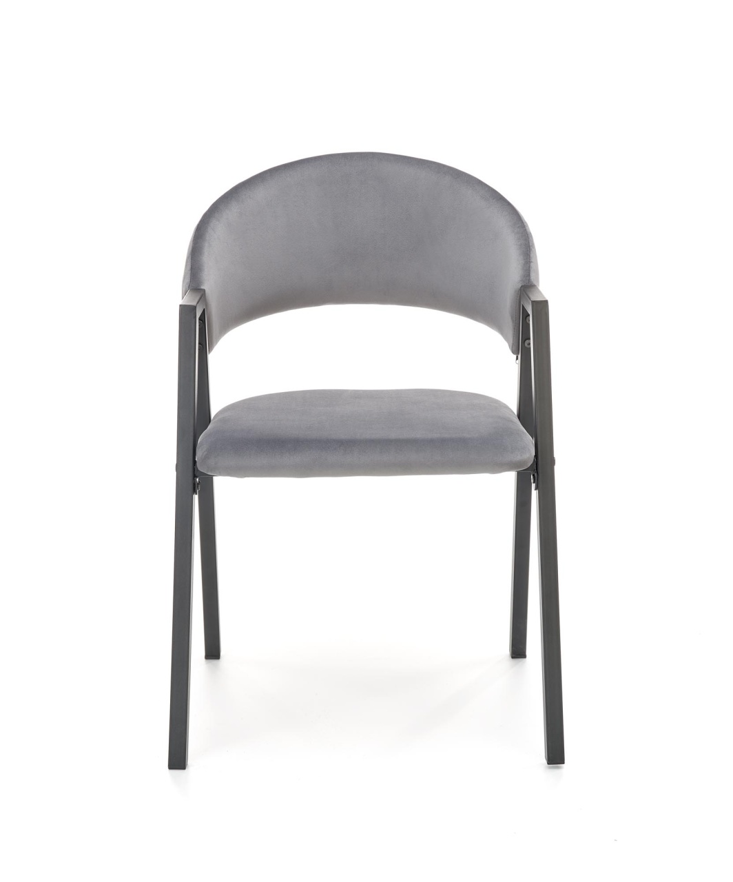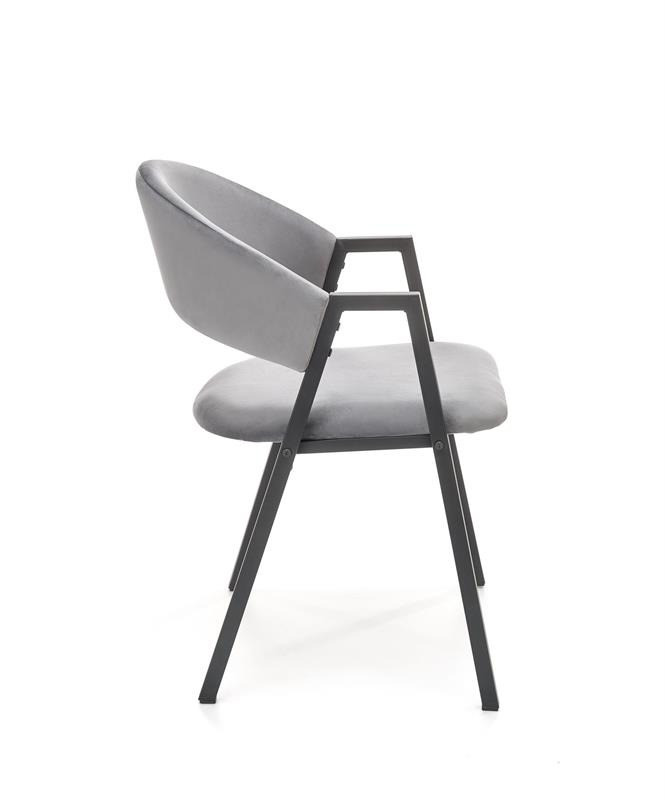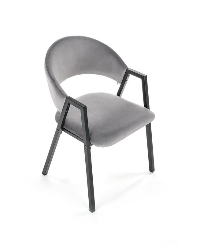 Scaun tapitat k473 - Gri Scaunul k473 este un scaun tapitat cu o catifea moale si eleganta, picioarele metalice garanteaza stabilitatea in timpul utilizarii, fiind potrivit pentru interioarele moderne in stil glamour. Confortul se imbina perfect cu functionalitatea, astfel incat cei care indragesc liniile bine definite si simplitatea formelor vor fi impresionati. Dimensiuni: Latime: 54 cm Adancime: 58 cm Inaltimea totala: 82 cm Inaltimea sezutului fata de sol: 47 cm Detalii tehnice: Cadrul este realizat din metal. Tapiteria este confectionata din catifea. Culoare: Gri / Negru Produsul nu este montat, este destinat pentru auto-asamblare. Instructiunile de montaj vin in colet.
