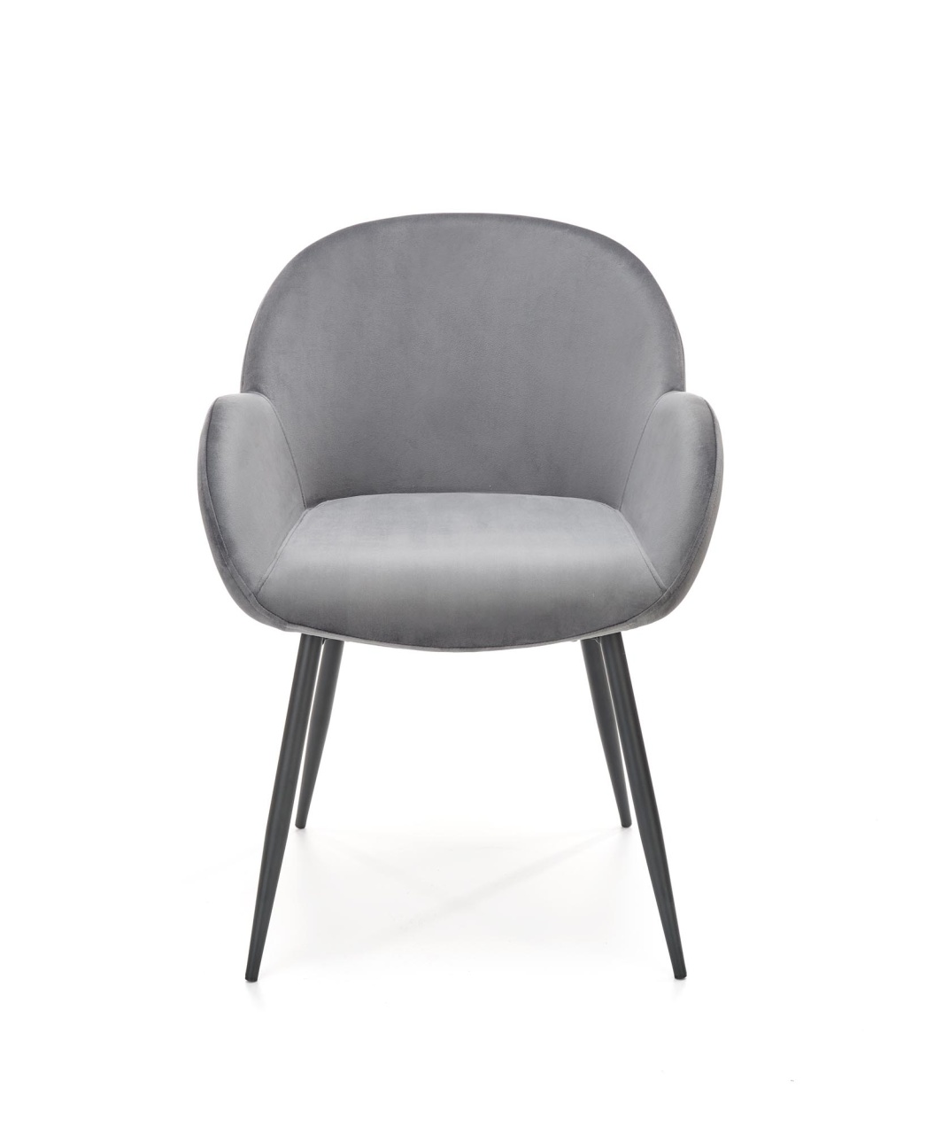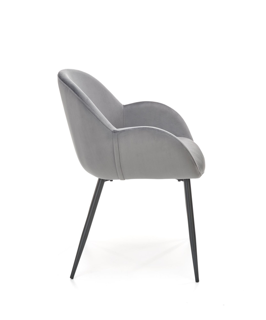 Scaunul K480 este un scaun tapitat cu o catifea moale si eleganta, picioarele metalice garanteaza stabilitatea in timpul utilizarii, fiind potrivit pentru interioarele moderne in stil glamour, dand o pata de culoare incaperii. Dimensiuni: Latime: 59 cm Adancime: 59 cm Inaltimea totala: 79 cm Inaltimea sezutului fata de sol: 48 cm Detalii tehnice: Cadrul este realizat din metal. Tapiteria este confectionata din catifea. Culoare: Gri / Negru Produsul nu este montat, este destinat pentru auto-asamblare. Instructiunile de montaj vin in colet.