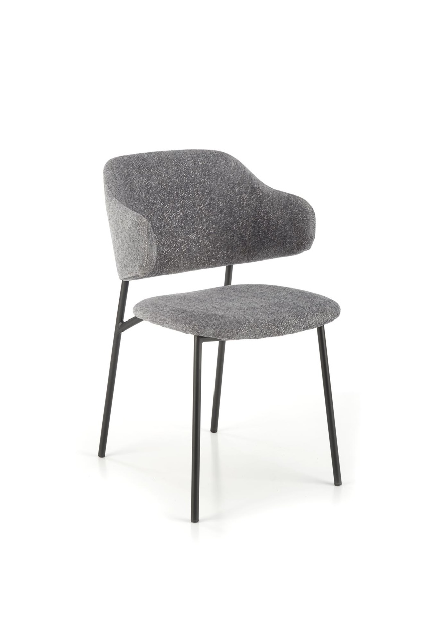 Scaun tapitat K497 gri cenusiu Scaunul tapitat K497 gri cenusiu este o piesa de mobilier eleganta, care aduce unicitate indiferent de zona in care este amplasat. Un scaun conceput pentru a oferi incantare ochilor si momente fericite de relaxare. Tapiteria din stofa delicata, face scaunul total diferit si original. Scaunul K497 este solutia perfecta pentru un dormitor, living sau camera de zi. Dimensiuni: Latime: 52 cm Adancime: 62 cm Inaltimea totala: 82 cm Inaltimea sezutului fata de sol: 46 cm Detalii tehnice: Cadrul scaunului este din metal si este tapitat cu stofa Culoare: Gri cenusiu / Negru Produsul nu este montat. Instructiunile de montaj se gasesc in colet.