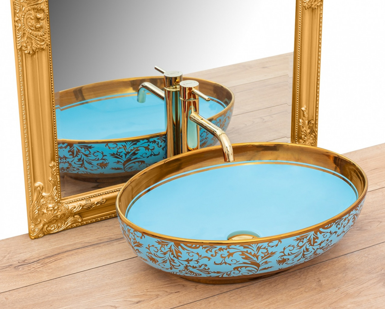 Lavoarul Margot albastru, este perfect pentru a crea un spațiu de spălat în băile principale sau secundare. Ușor de instalat pe un blat sau pe o piesă de mobilier, lavoarul Margot realizat din ceramică sanitară, este un produs foarte elegant și extrem de modern. Este foarte practic, ușor de curățat și de întreținut și este rezistent la decolorare, zgârieturi și pierdea luciului. Culoare: Albastru / Gold Material: ceramica sanitara Latimea lavoarului: 40 cm Lungimea lavoarului: 52 cm Inaltimea lavoarului: 13,5 cm Adancimea lavoarului: 11 cm Material: Ceramica sanitara Diametrul orificiului de scurgere: 45 mm Pretul include doar lavoarul.