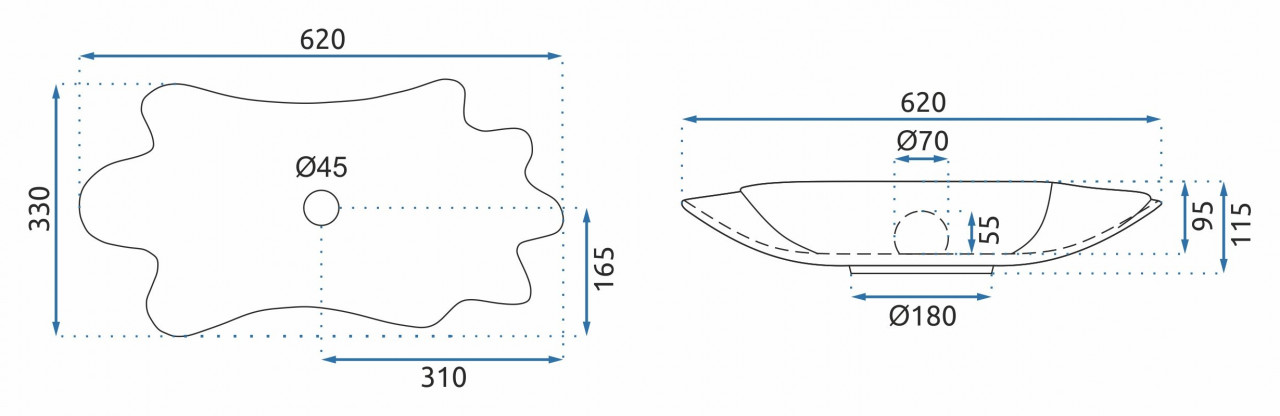 Lavoarul Sea este realizat din ceramică albă de cea mai înaltă calitate și are o formă ovală, ondulată. Acesta este finisat cu o margine aurie, care oferă un rezultat final frumos. Lavoarul este incredibil de atractiv, este perfect pentru iubitorii de forme nestandardizate, aducând eleganță amenajării unei băi acasă sau la birou. Detalii tehnice: Metodă de montaj: De blat Material: Ceramică sanitară Culoare: Alb/Auriu Finisaj: Lucios Lungime: 620 mm Lățime: 330 mm Înălțime: 115 mm Adâncime: 95 mm Formă: Asimetric Preaplin: Nu Orificiu pentru preaplin: Nu