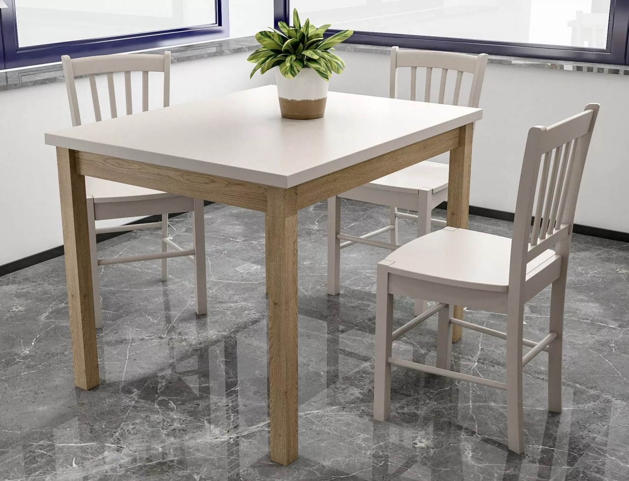 Masa Adam este o piesă modernă și funcțională, ideală pentru spații compacte sau interioare cu design scandinav și contemporan. Blatul, finisat în nuanța caldă de stejar Cremona Torro, adaugă un aspect natural și plăcut, în timp ce baza în ton casmir oferă un contrast subtil și elegant. Dimensiuni: 75 65 90 Detalii tehnice: blat: placă laminată, cadru: MDF, culoare: cașmir / stejar cremona torro Produsul nu este montat, este destinat pentru auto-asamblare. Instrucțiunile de montaj vin în colet.