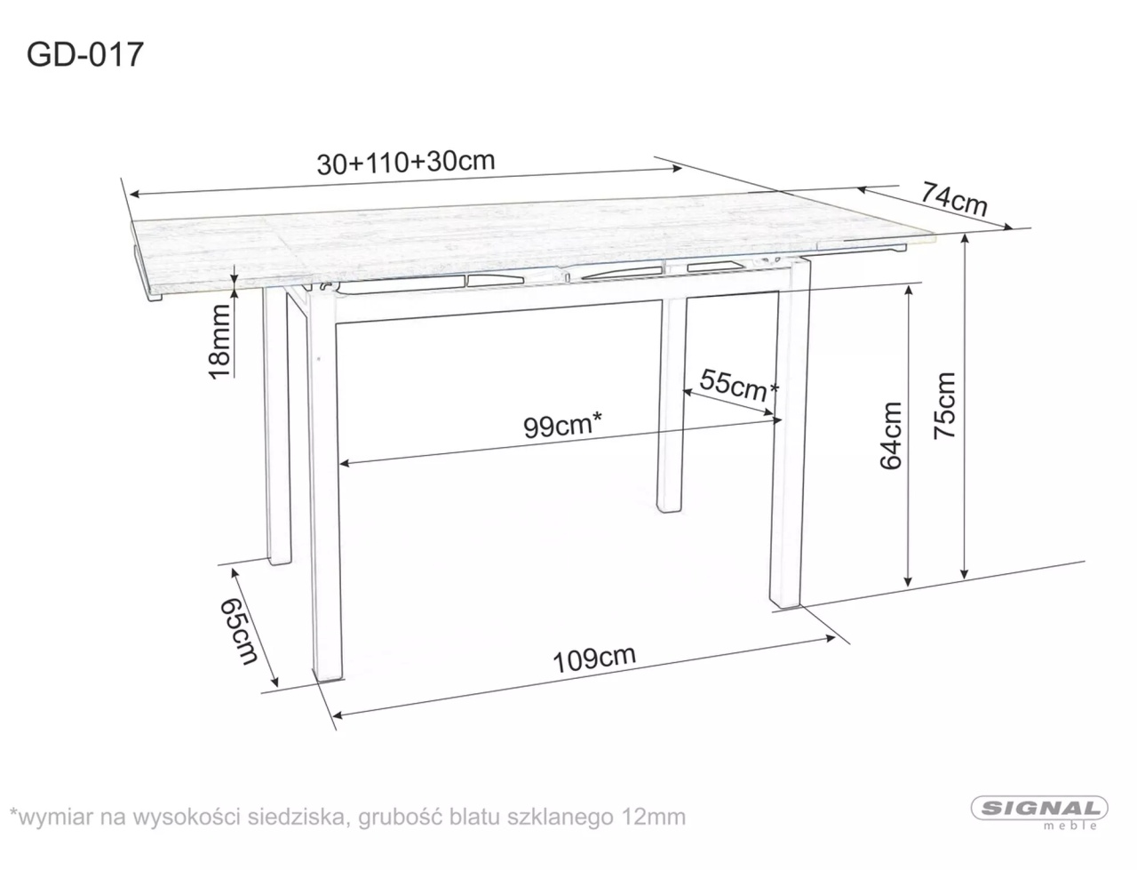 Masa extensibilă GD-017 este o alegere practică pentru interioare moderne, oferind un design simplu și funcțional. Cu o lungime de 110 cm, care se extinde până la 170 cm, permite adaptarea rapidă la diferite nevoi, de la utilizarea zilnică la ocazii speciale. Dimensiuni: 75 74 110 170 Detalii tehnice: blat: sticlă securizată, culoare: gri / cadru: metal cromat Produsul nu este montat, este destinat pentru auto-asamblare. Instrucțiunile de montaj vin în colet.