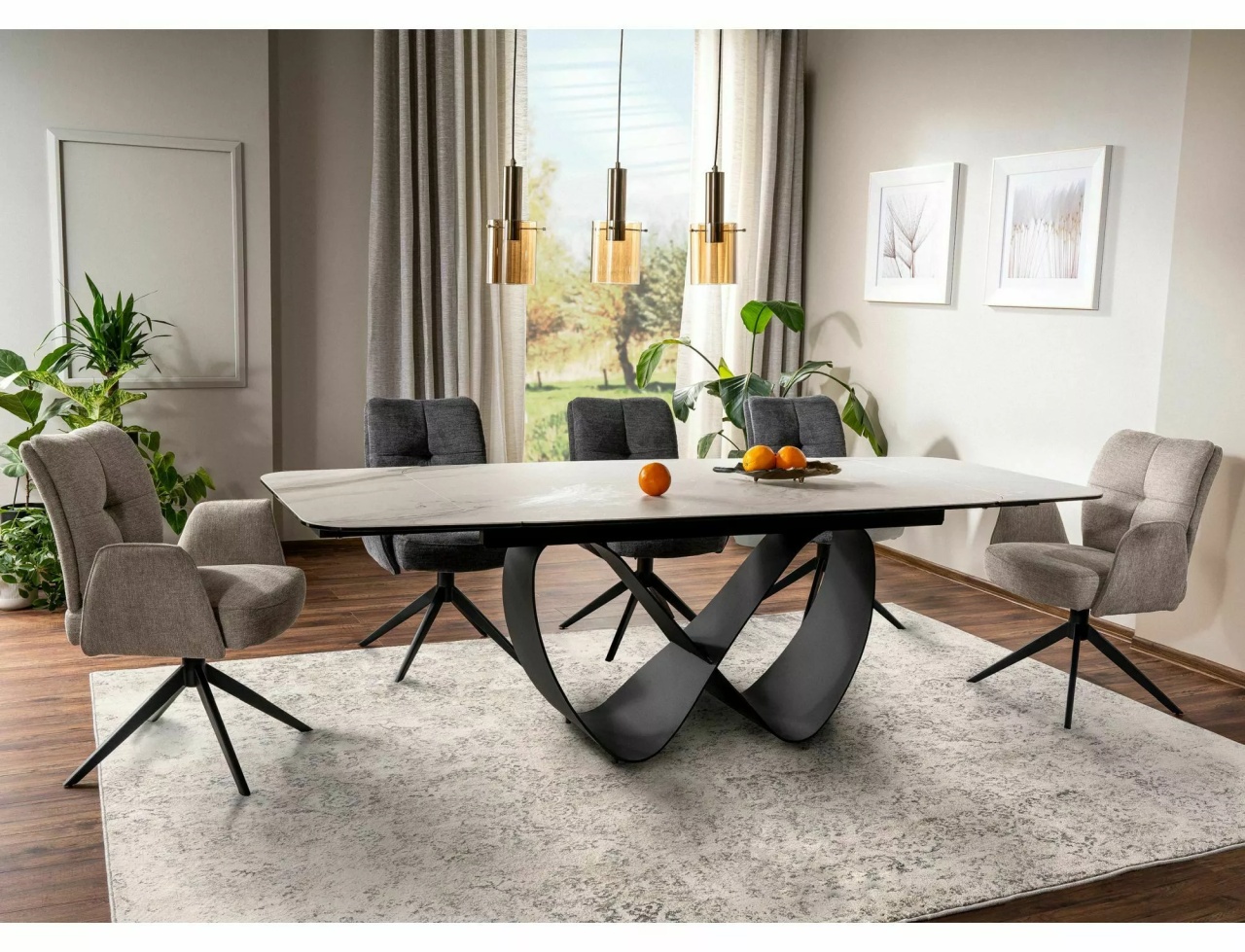 Masa extensibilă Infinity Ceramic este o piesă de mobilier impresionantă, ce combină estetica modernă cu funcționalitatea de zi cu zi. Blatul ceramic în nuanța Nature Cloud adaugă un plus de rafinament și eleganță, fiind totodată rezistent și ușor de întreținut. Baza metalică neagră oferă stabilitate și un contrast vizual puternic, perfect pentru un interior contemporan. Dimensiuni: 76 95 160 240 Detalii tehnice: blat: sticlă securizată + ceramică NATURE CLOUD, cadru: metal, culoare: alb mat / negru mat Produsul nu este montat, este destinat pentru auto-asamblare. Instrucțiunile de montaj vin în colet.