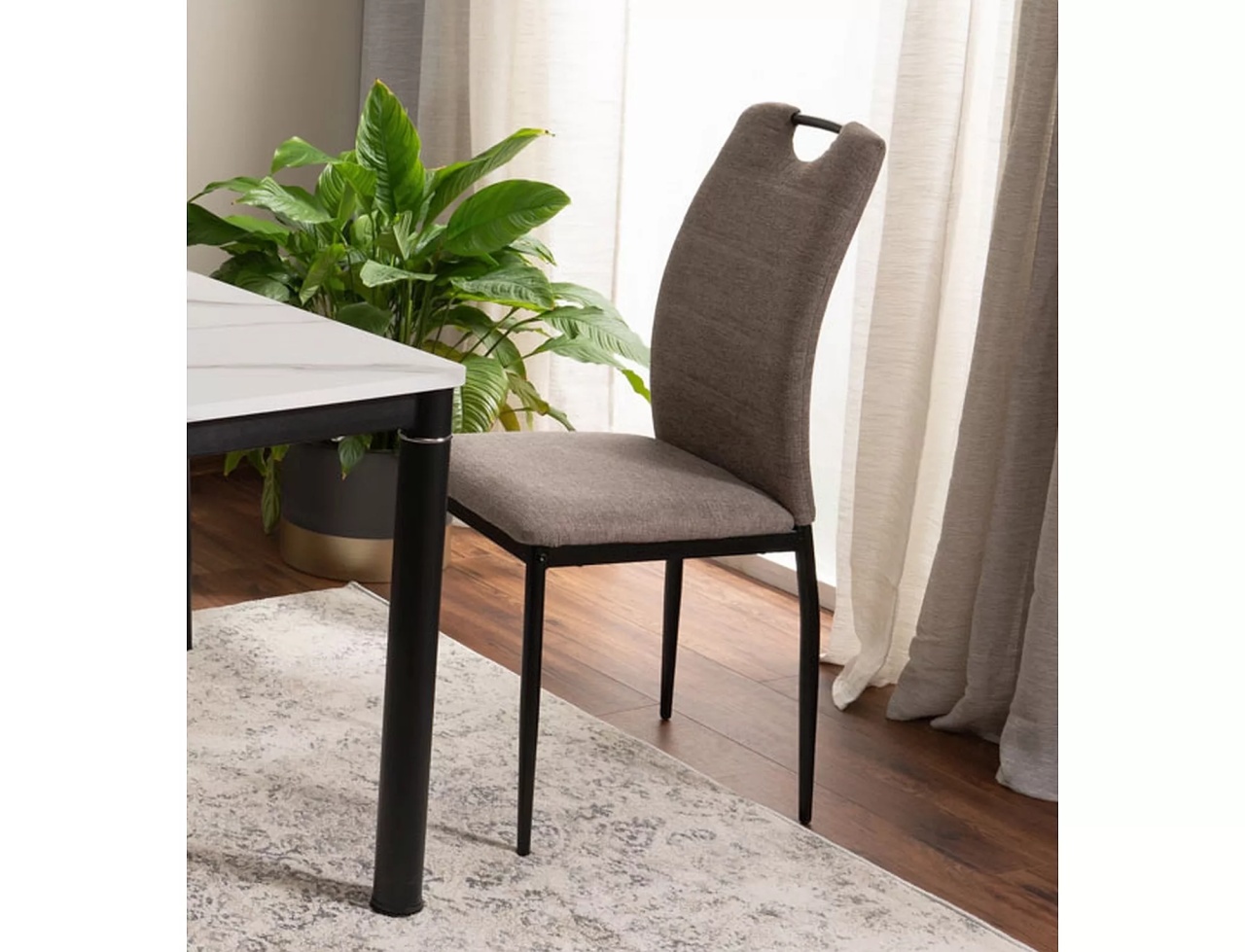 Scaunul Rip este o alegere modernă și practică, concepută pentru interioare cu un stil contemporan și bine definit. Tapițat în material textil bej și susținut de o structură metalică neagră, acest model impresionează prin designul său simplu, dar elegant. Dimensiuni: Detalii tehnice: tapițerie: material textil Brego, cadru: metal, culoare: 34 bej / negru mat. Mâner în partea de sus a spătarului. Produsul nu este montat, este destinat pentru auto-asamblare. Instrucțiunile de montaj vin în colet.