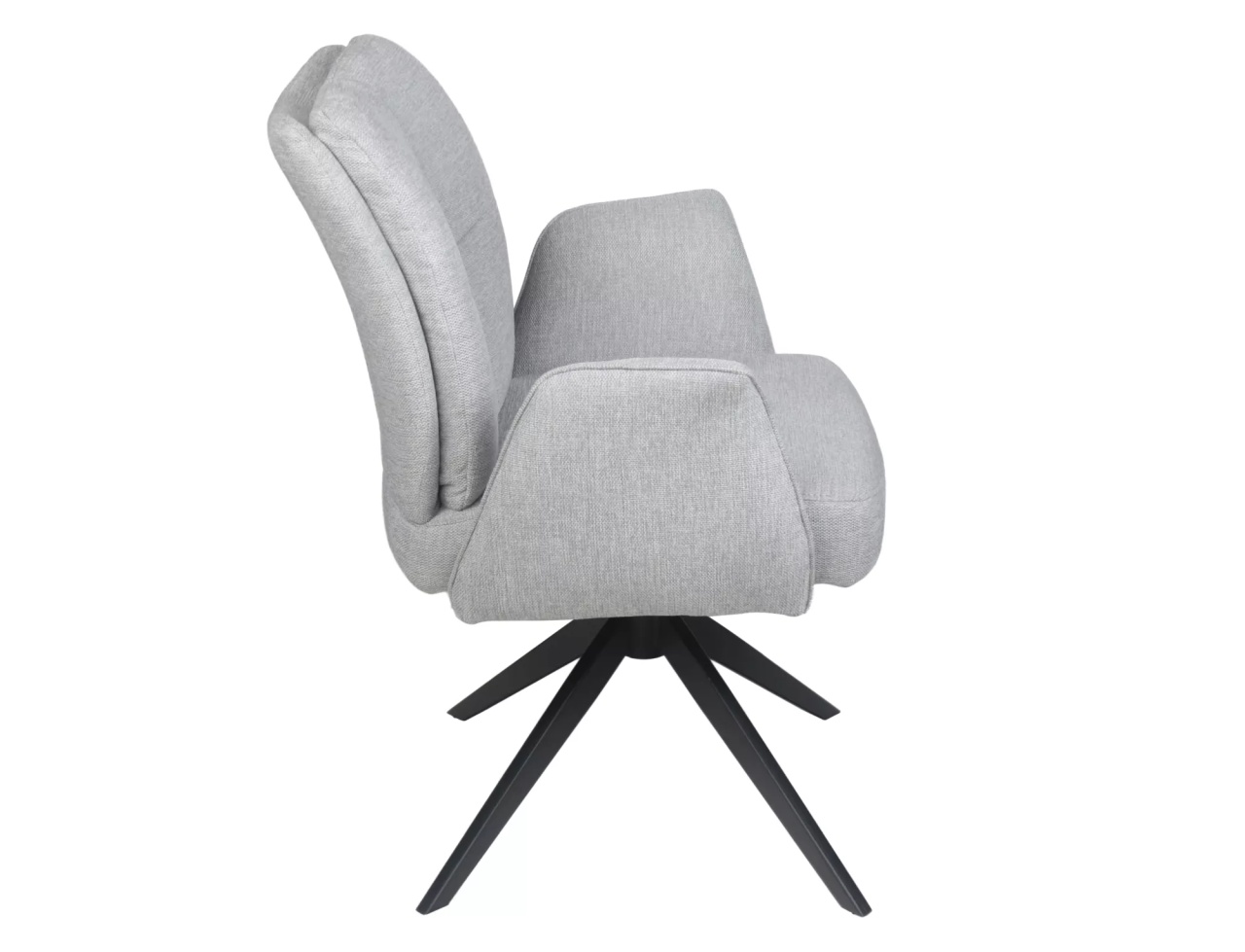 Scaunul Wing va fi perfect pentru interioare decorate intr-un stil clasic. Este o piesa de mobilier eleganta, care va fi un plus de eleganta si functional pentru sufragerie sau dining. Tapiteria moale si delicata va face scaunul total diferit si original. Dimensiuni: Detalii tehnice: tapițerie: material textil Brego, cadru: metal, culoare: 02 gri deschis / negru mat. Funcție de revenire automată - scaunul se rotește la 180 de grade, cu funcție de revenire la poziția inițială Produsul nu este montat, este destinat pentru auto-asamblare. Instructiunile de montaj vin in colet.